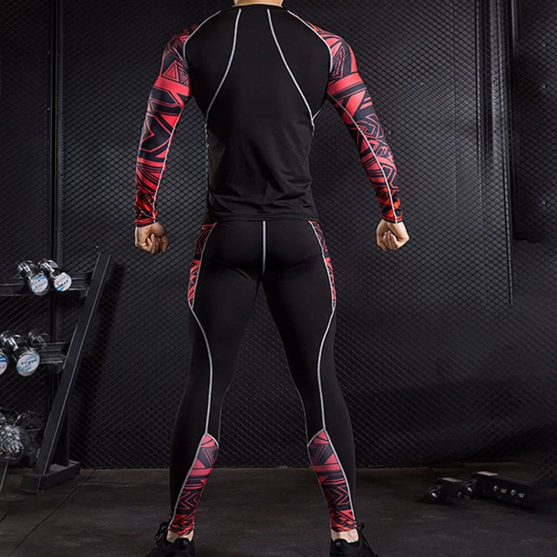 Комплект из 3 предметов, леггинсы для бега, спортивный костюм для фитнеса, Мужская футболка, трико, бодибилдинга, тренировочная быстросохнущая компрессионная спортивная одежда
