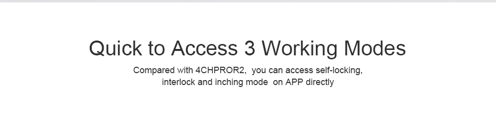 По сравнению с 4CH ProR2, вы можете получить доступ к самоблокирующимся, блокируемым и inching режимам непосредственно в приложении.