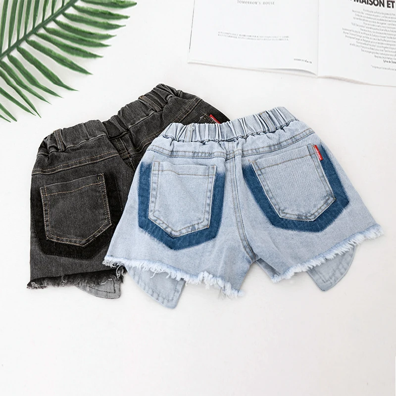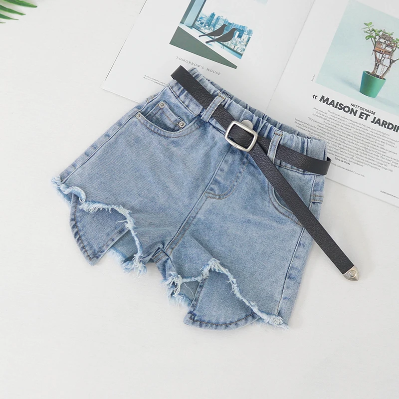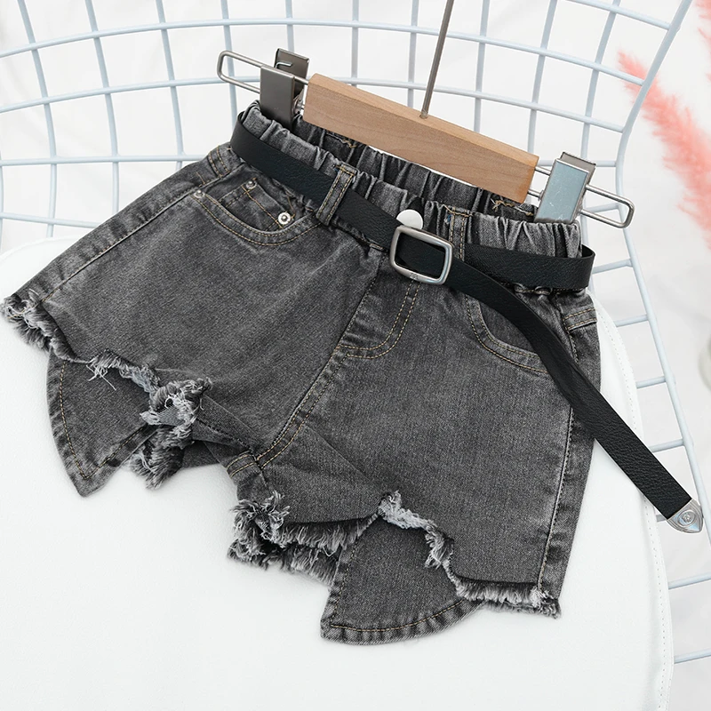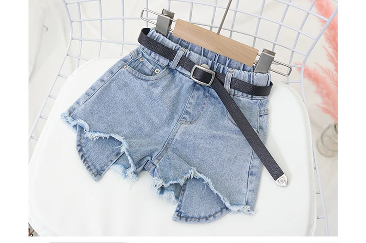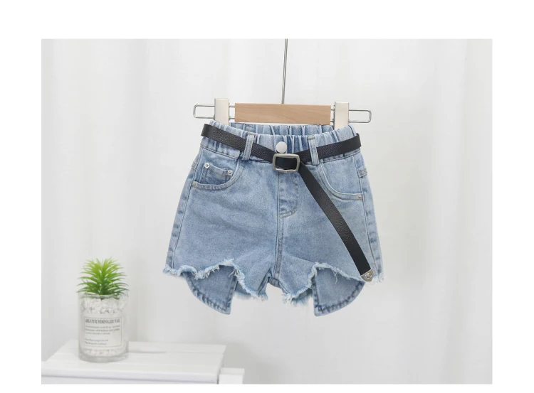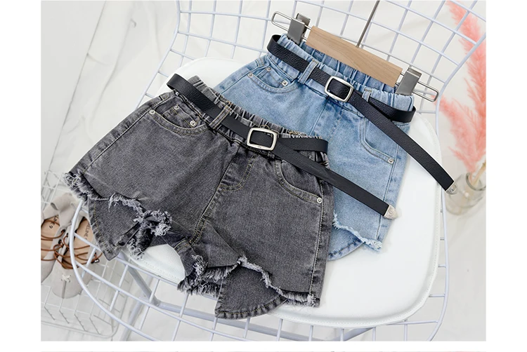 Рваные джинсовые шорты летняя детская одежда для девочек с поясом, модные штаны для маленьких девочек от 10 до 12 лет