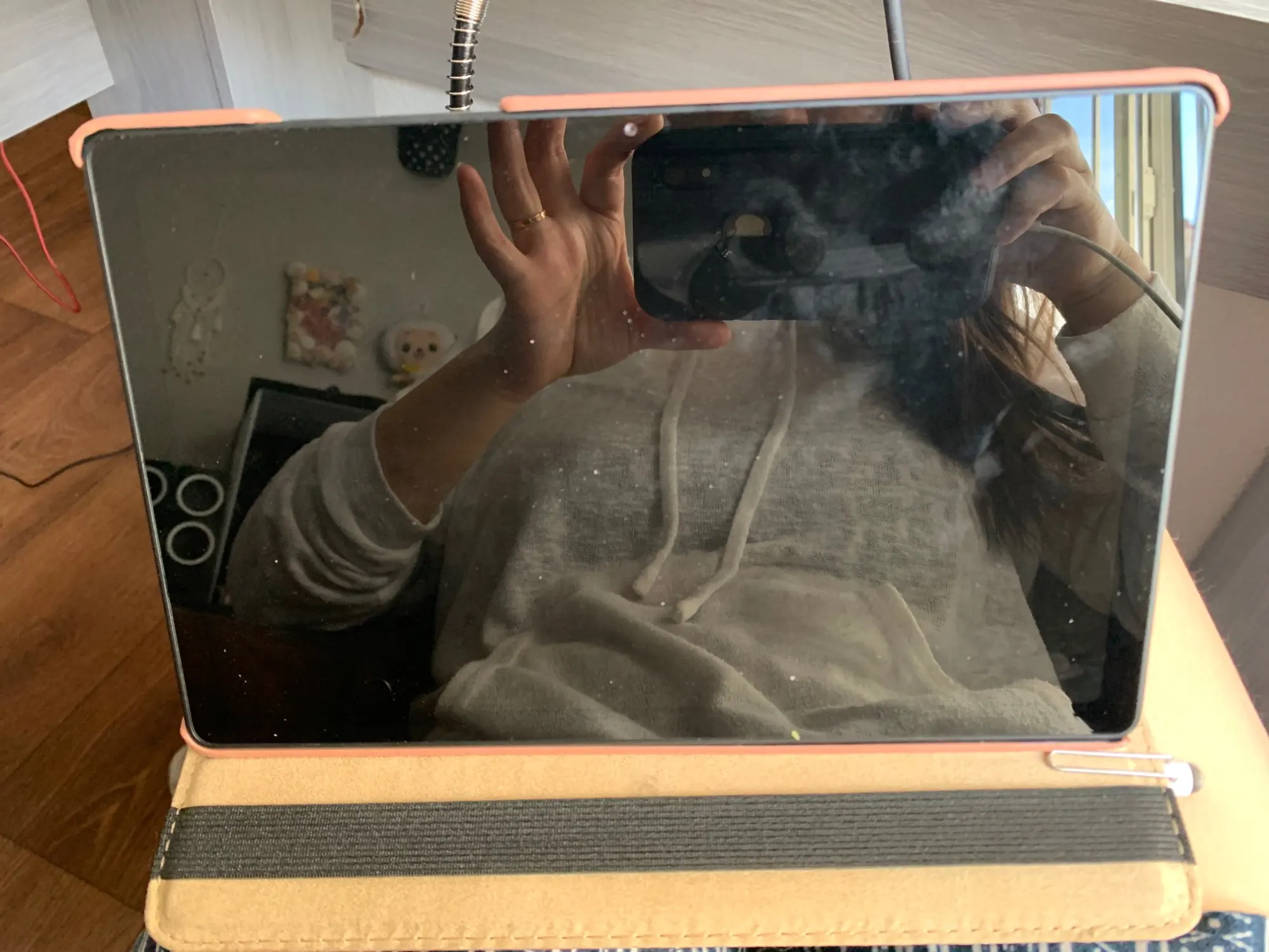 Чехол хороший. Пришёл почти за месяц. На ощупь приятный. Чехол свободно поворачивается, стоит устойчиво. Пока нравится. Добавление: заметила небольшой брак. Немного расстроена, но не критично. Скорее всего, это вина почты, повредили при доставке.