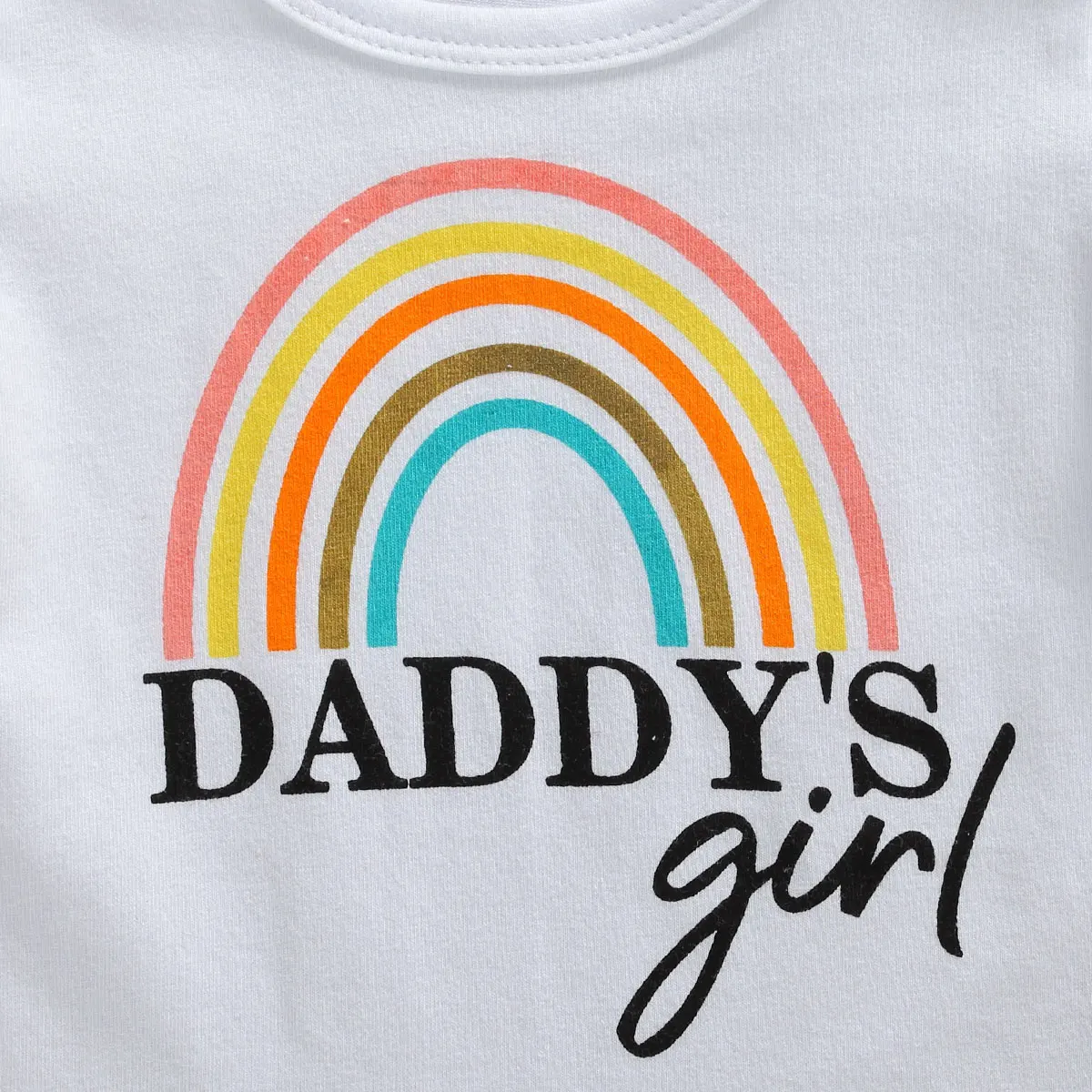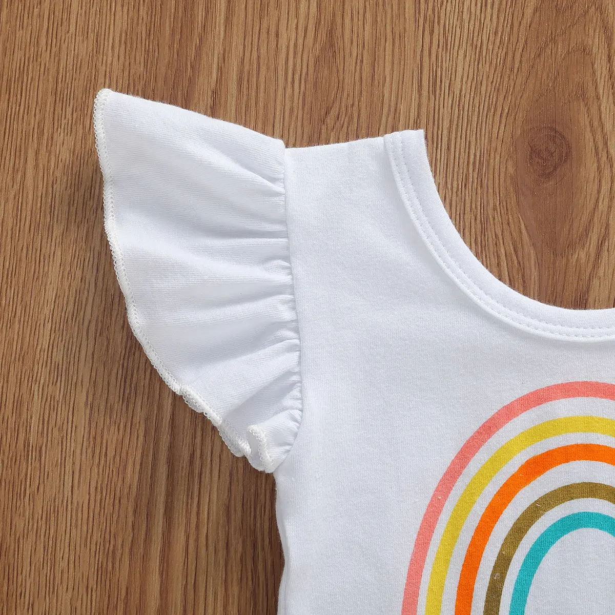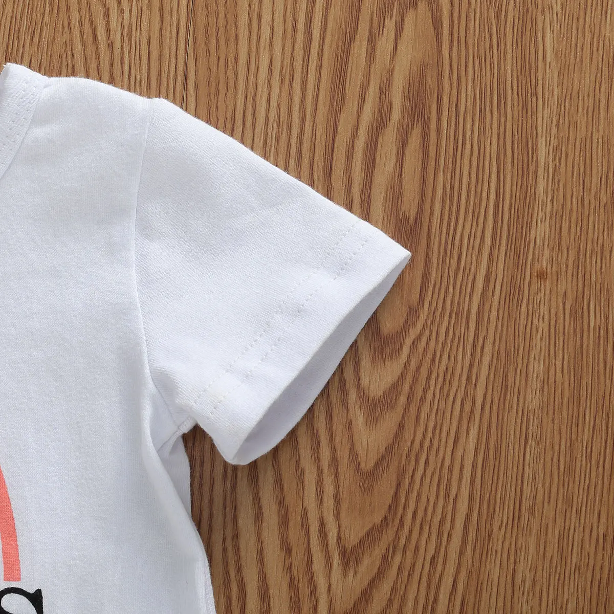 От 0 до 6 лет летнее платье прекрасный ребенок младенец девочки Комплекты одеждыкомбинезон с радужным принтом, топы + джинсовые шорты