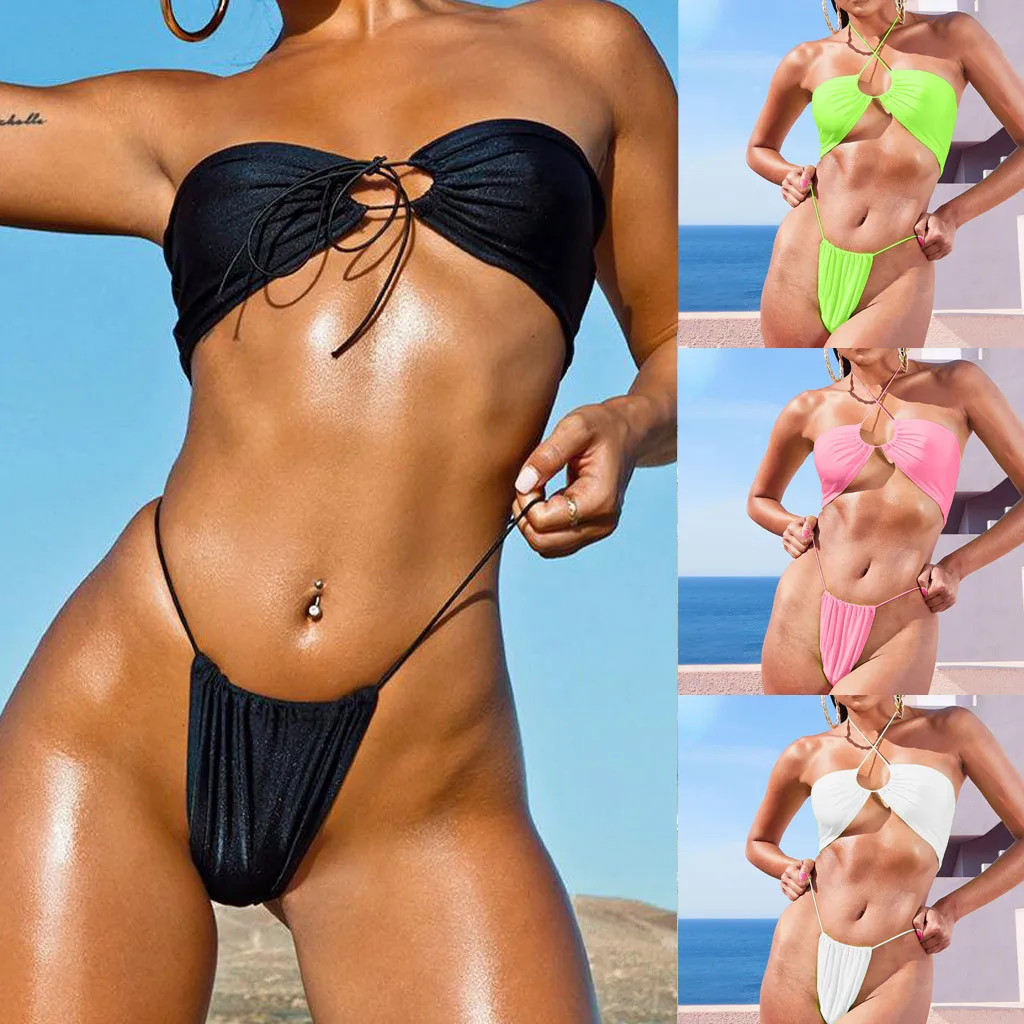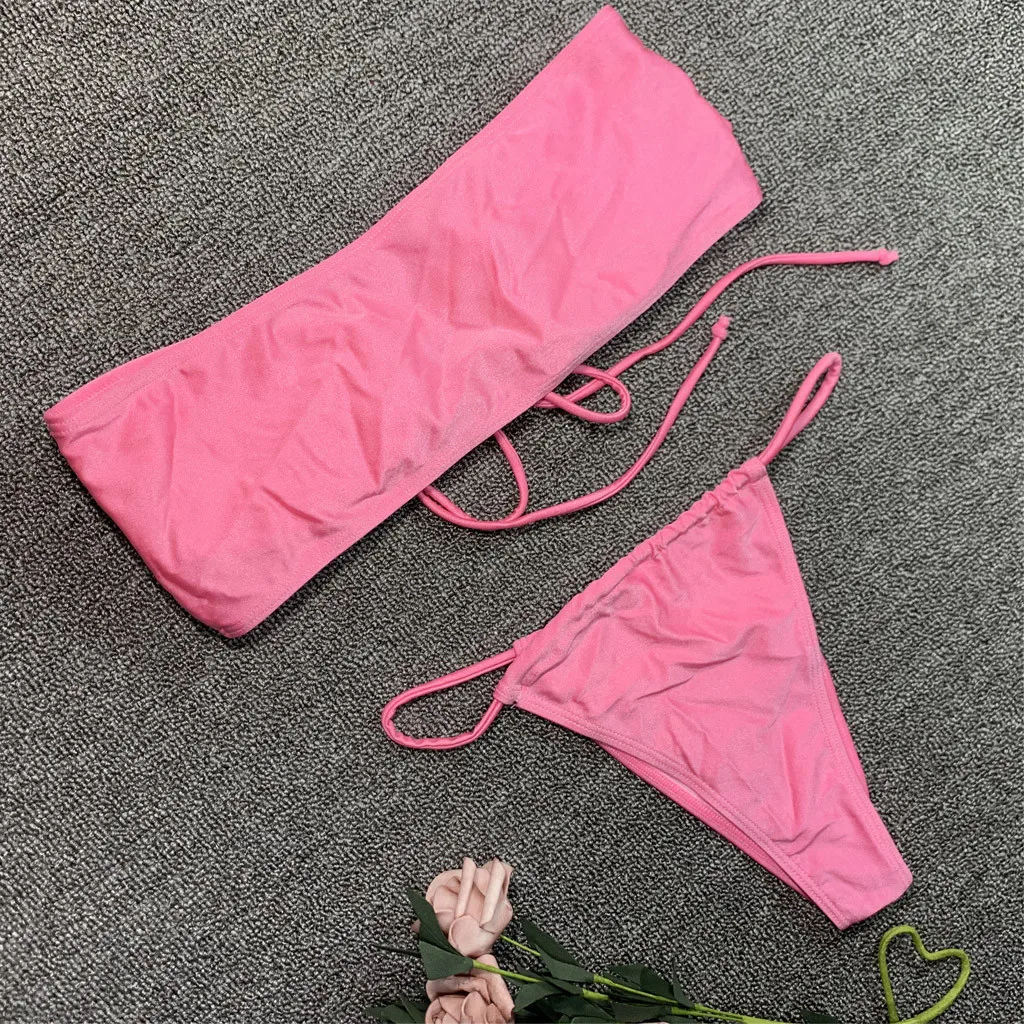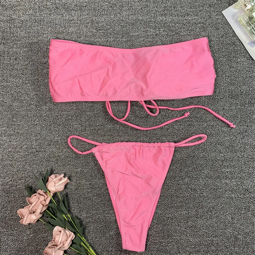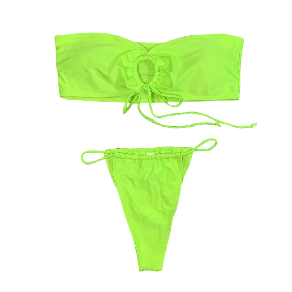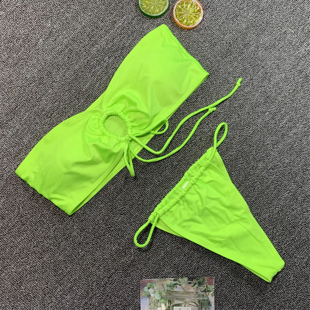 Женский купальник-бикини, неоновый комплект бикини с высокой талией, пляжная одежда, ажурный бандажный купальник, 2021