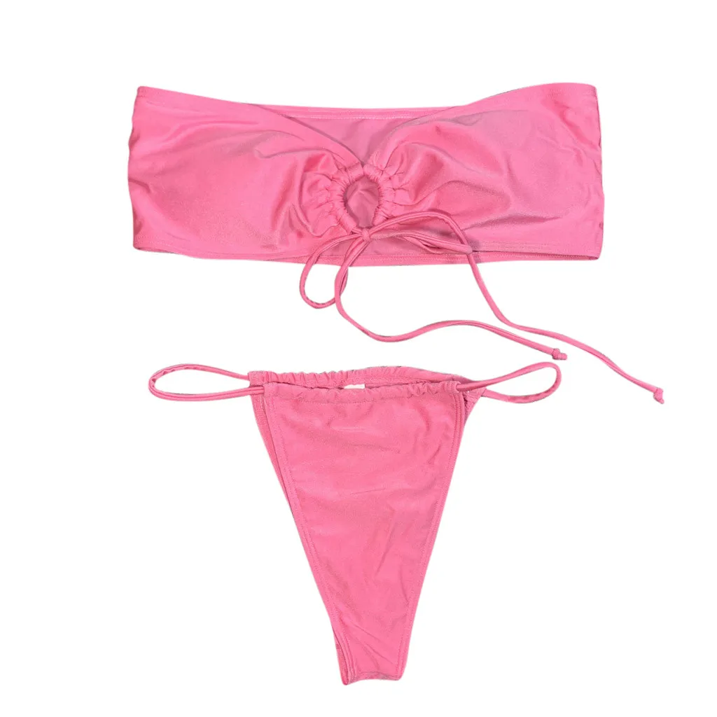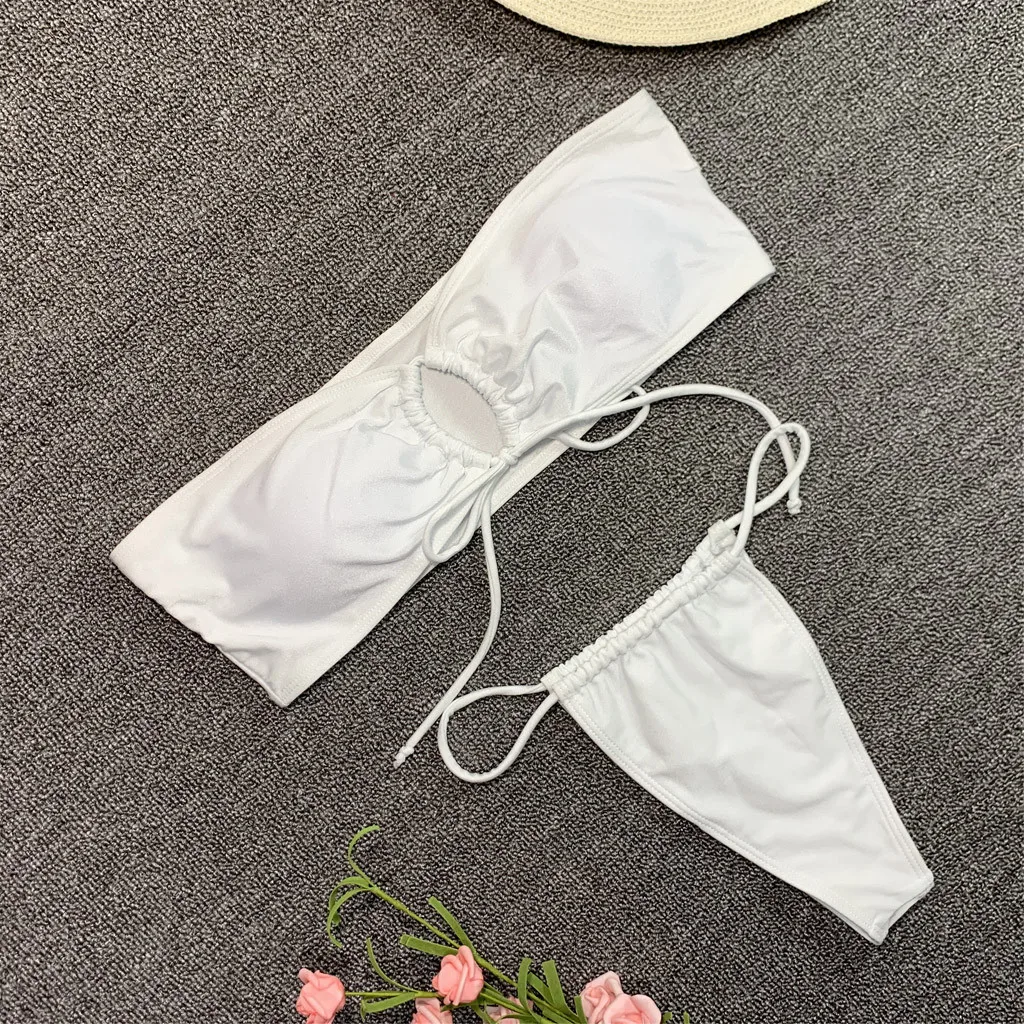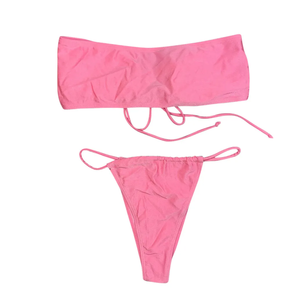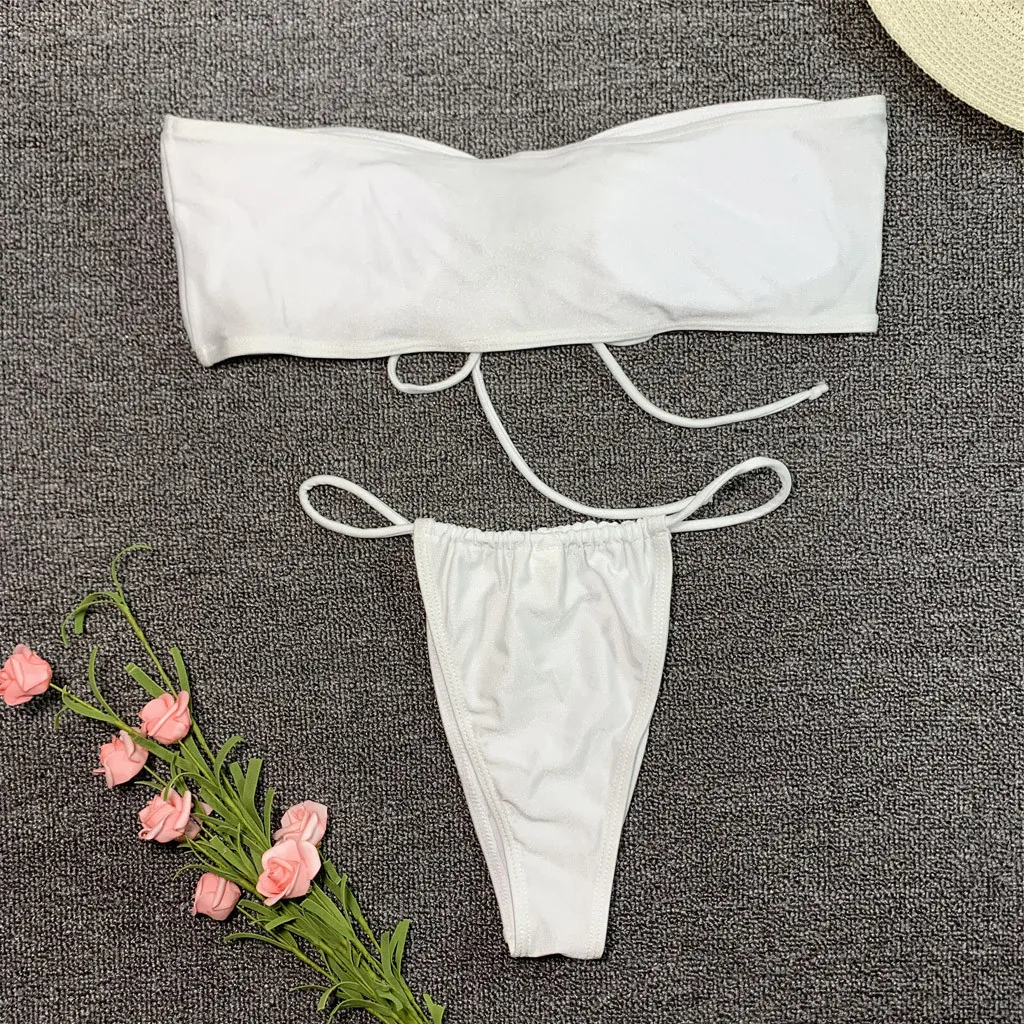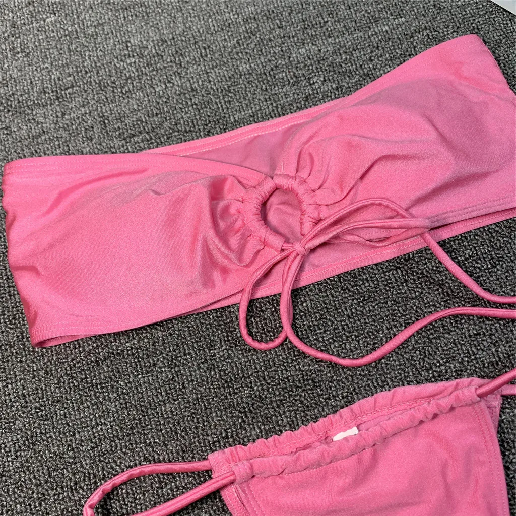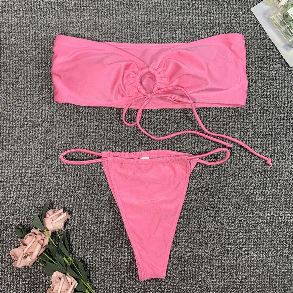 Женский купальник-бикини, неоновый комплект бикини с высокой талией, пляжная одежда, ажурный бандажный купальник, 2021