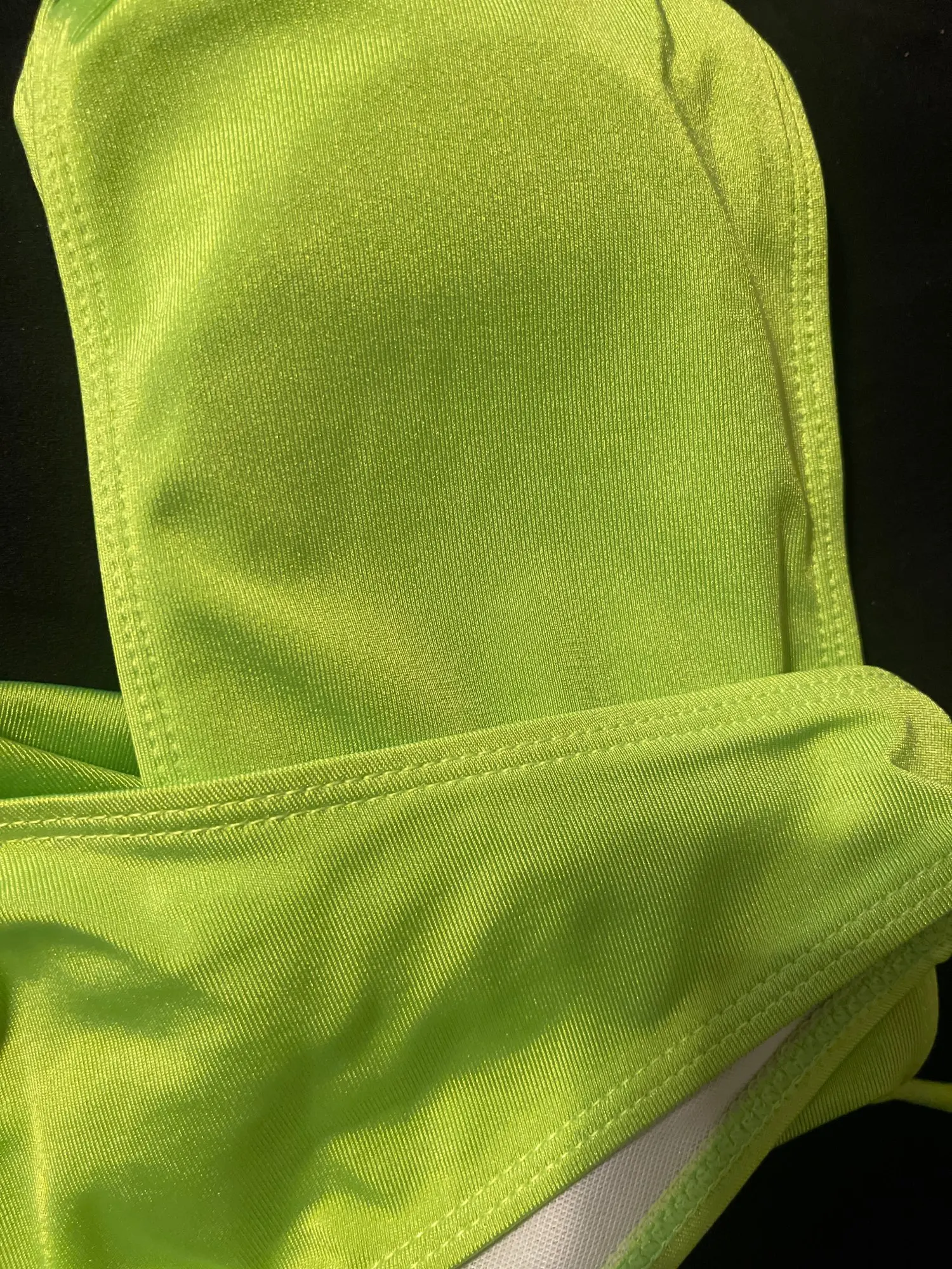 Этот купальник более бархатный, чем спандекс. Материал тонкий, поэтому, скорее всего, будет виден верблюжий носок при намокании. Цвет также не неоновый зеленый, как на картинке. Я бы не хотел, но это снова.