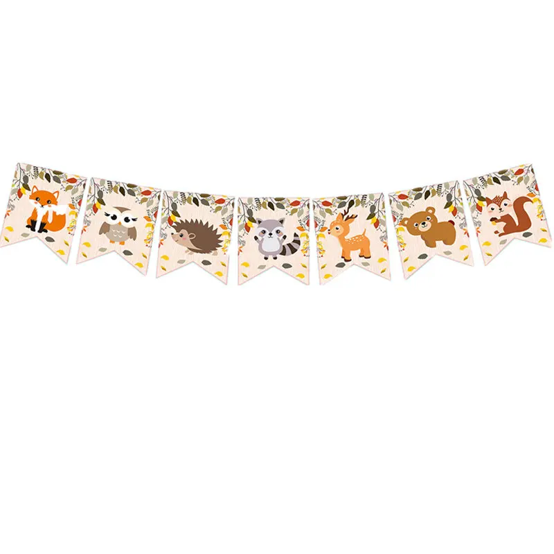 Баннеры джунгли тематические праздничные бумажные, Мультяшные животные, гирлянда, лесная лиса, белка, флажки для детского душа, детский день рождения