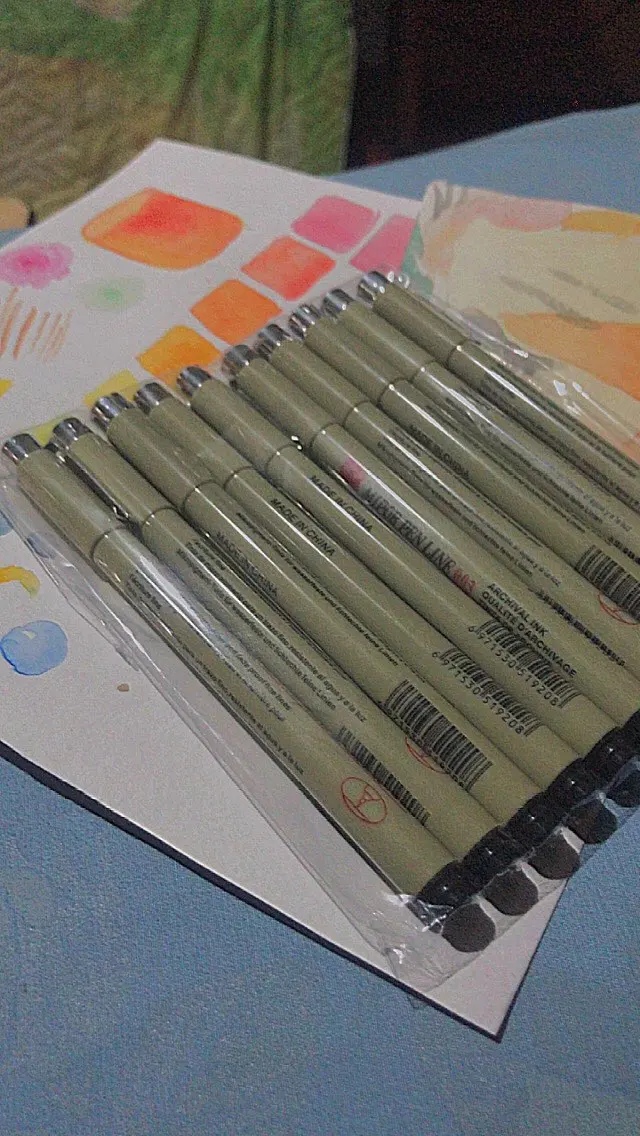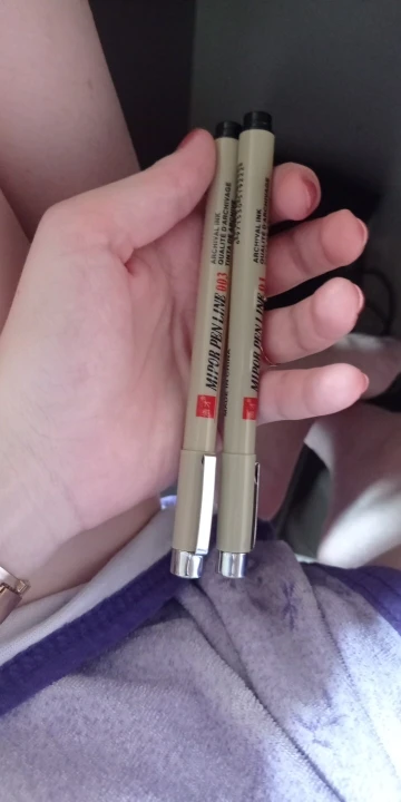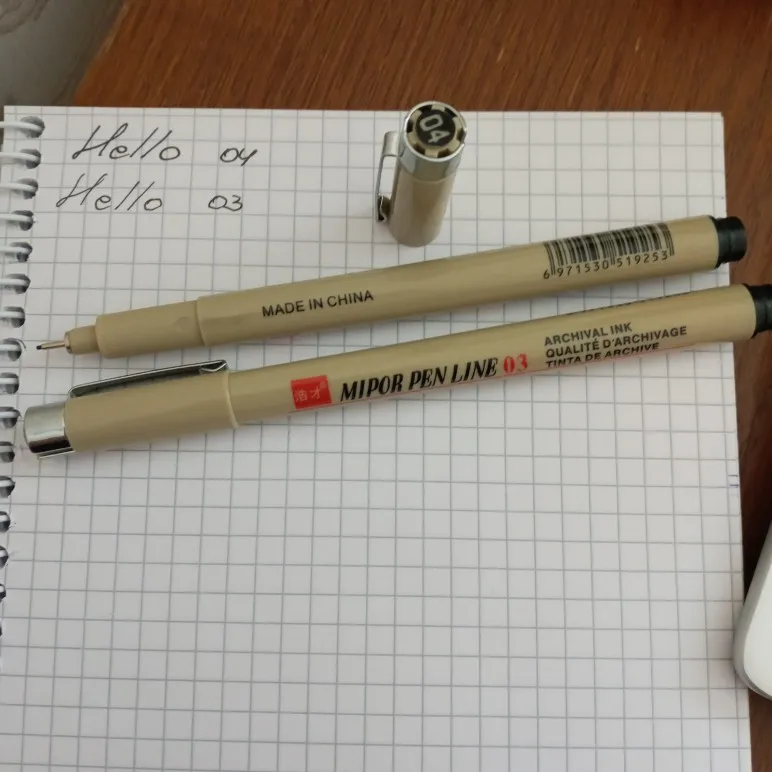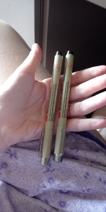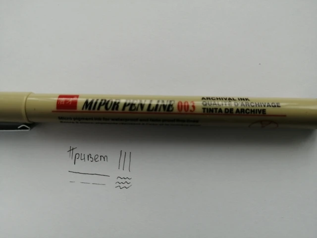 Добрый день.Дошол проверили,всё хорошо.Шол месяц наверное плюс, минус.Брали самый тонкий такой и отправили.Давольны мои дети,они и заказывали.По мне обычный маркер,просто ооооочень тонкий.