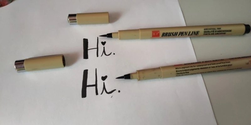 Я люблю это! Я обязательно закажу еще один. Я заказал кисть для кончика, я не знаю, как долго длится кончик с этим хорошим качеством, но это единственная ручка, так что теперь я наконец-то понимаю известность с ручками и маркерами кончика кисти. Они удобны и очень легко получить профессиональные результаты! Непревзойденное качество/цена! Я прилагаю два изображения быстрого и безупречного использования, которое я сделал, чтобы вы могли видеть более или менее тонкий и толстый, который можно получить.