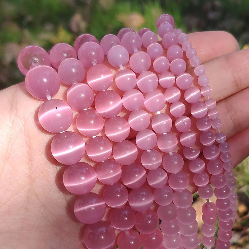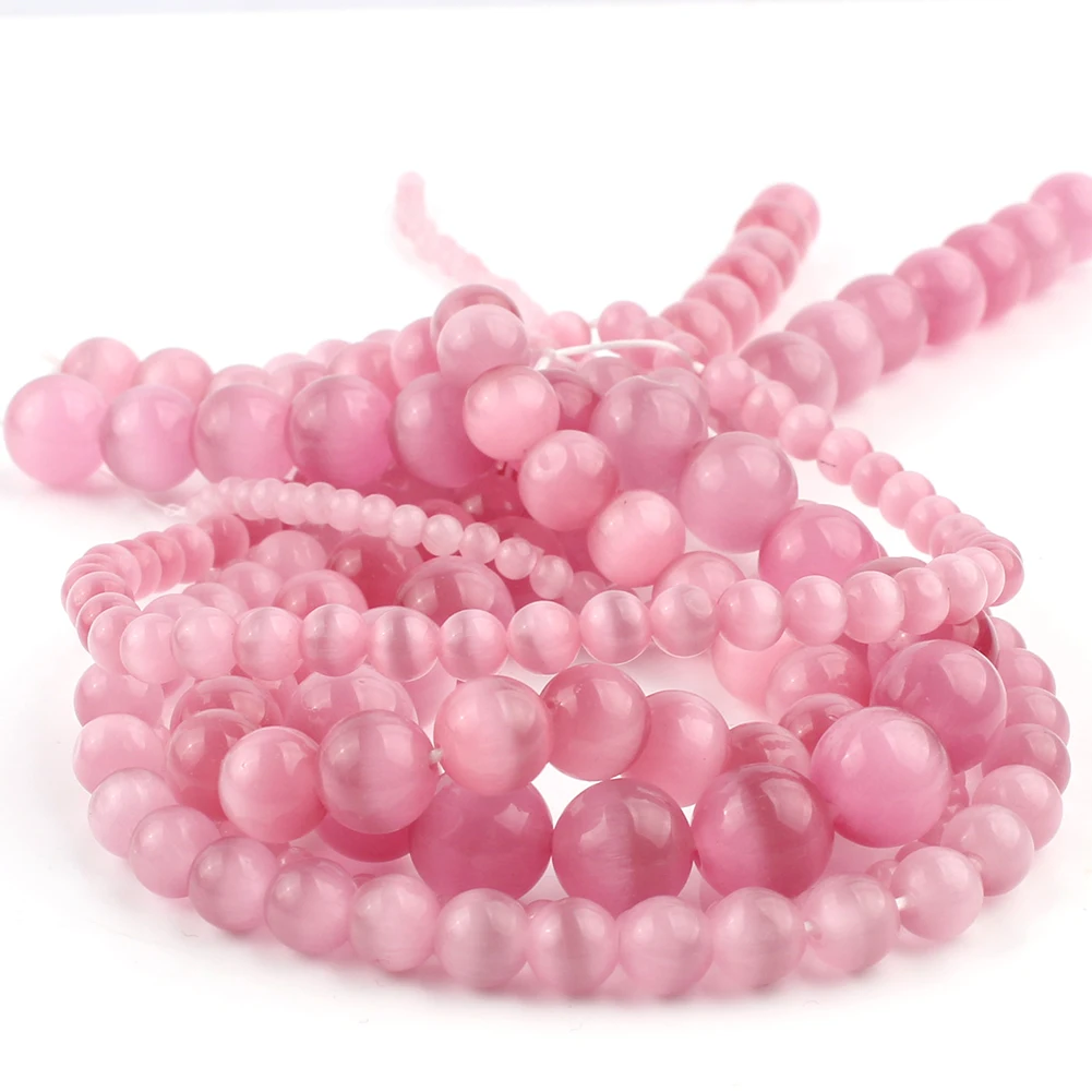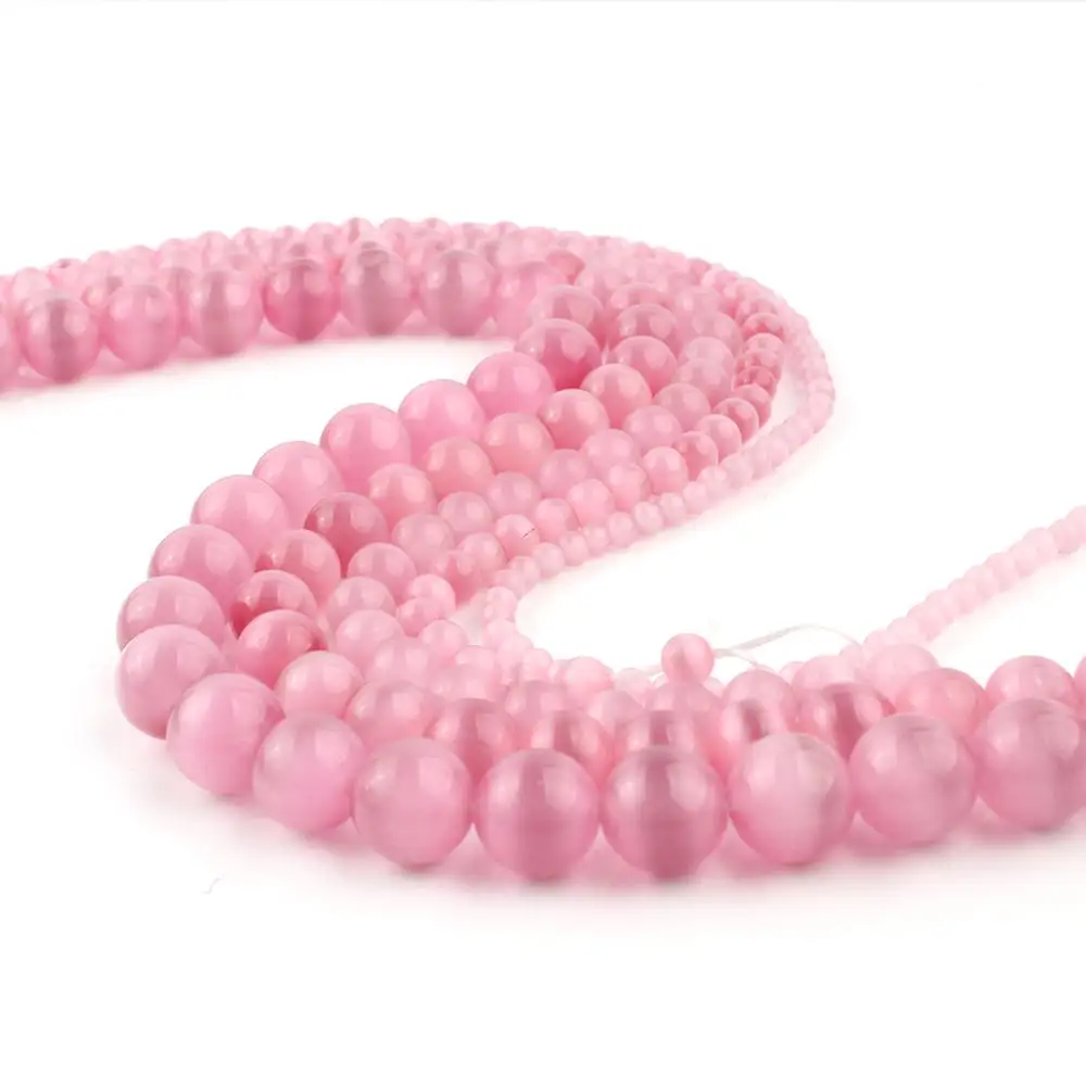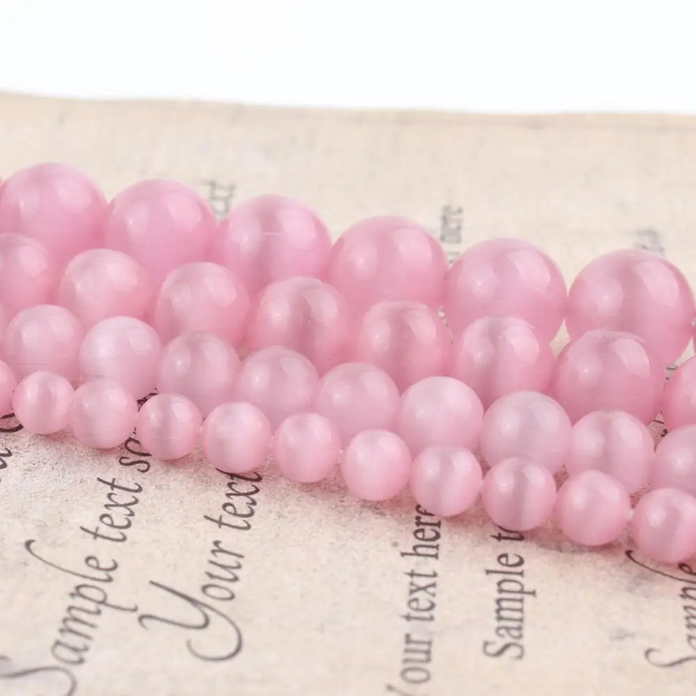 4681012 мм AAA Розовый ГЛАДКИЙ кошачий глаз фотоэлемент для самостоятельного изготовления браслетов, ювелирных изделий, опаловые бусины 15 дюймов
