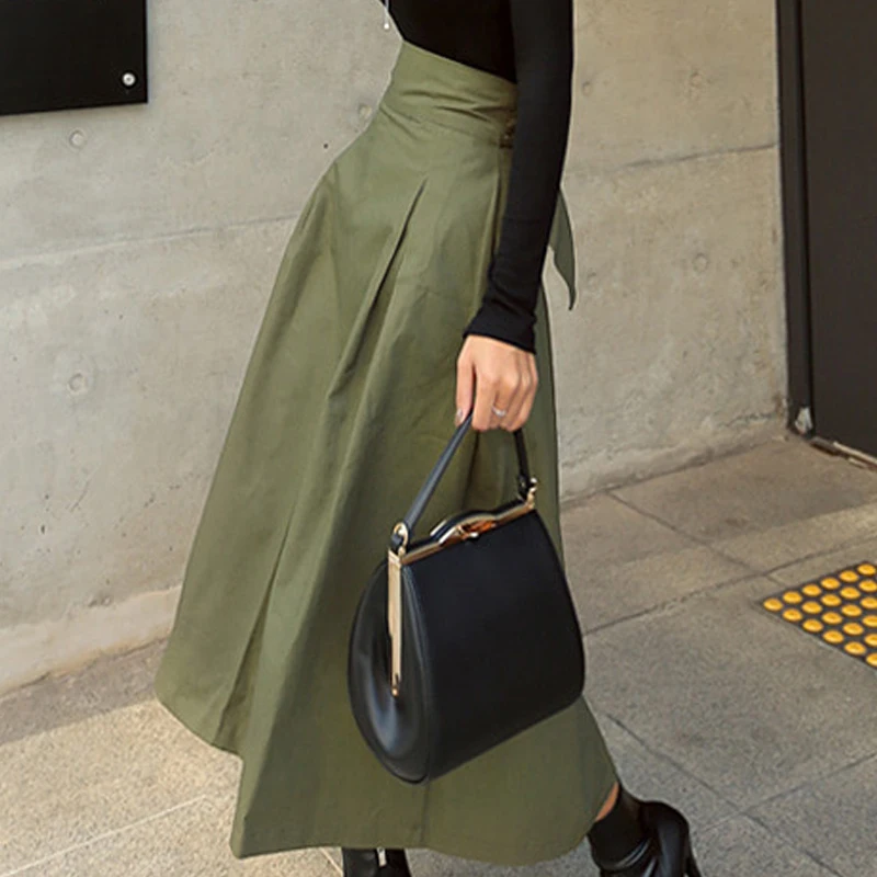Юбка женская узкая с завышенной талией, модная однотонная Свободная юбка в Корейском стиле, Длинная зеленая юбка, осень 2021