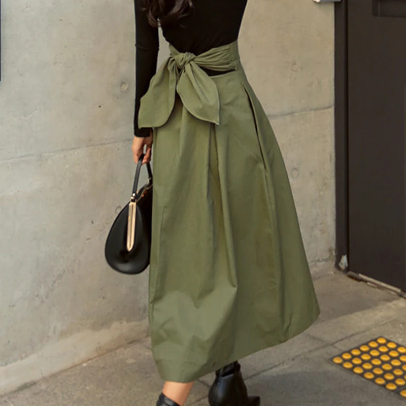 Женская юбка, корейская мода, однотонная длинная юбка ldaie, осення...