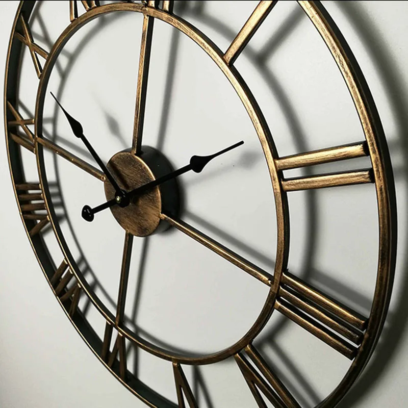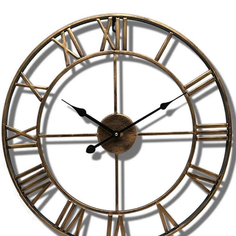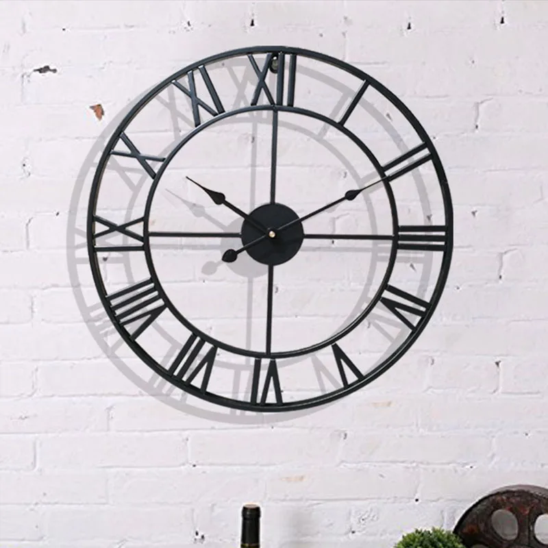 Настенные часы с римскими цифрами в скандинавском стиле, большие металлические железные круглые черные бронзовые в винтажном стиле ретро, домашний декор для гостиной, подарок 15,7 дюйма