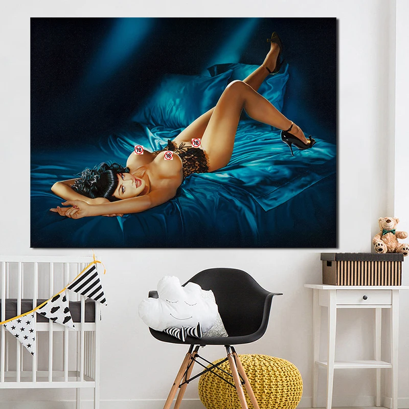 Привлекательная Обнаженная девушка на кровати, Классические холщовые постеры, принты, настенная живопись, картина маслом, декоративная картина, Современное украшение для дома в спальню
