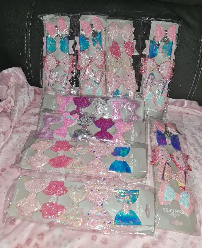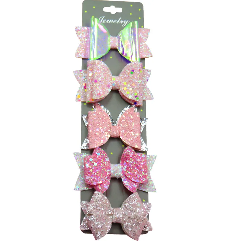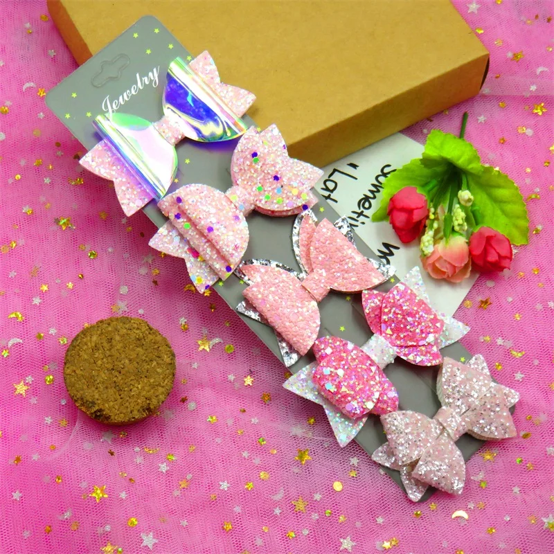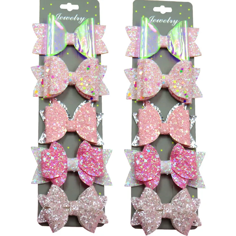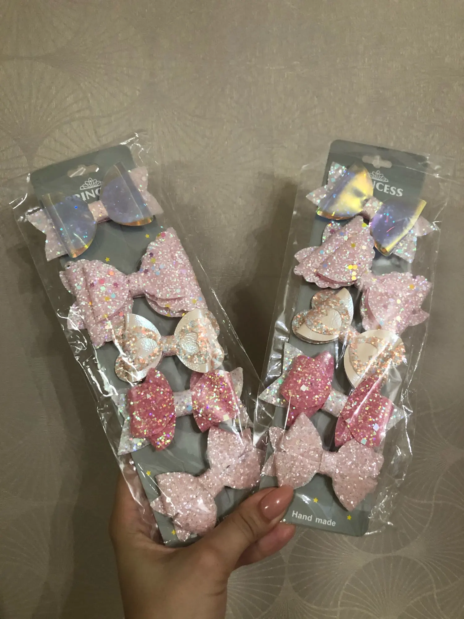 Заколки для волос Детские с бантом и пайетками, 10 шт.лот