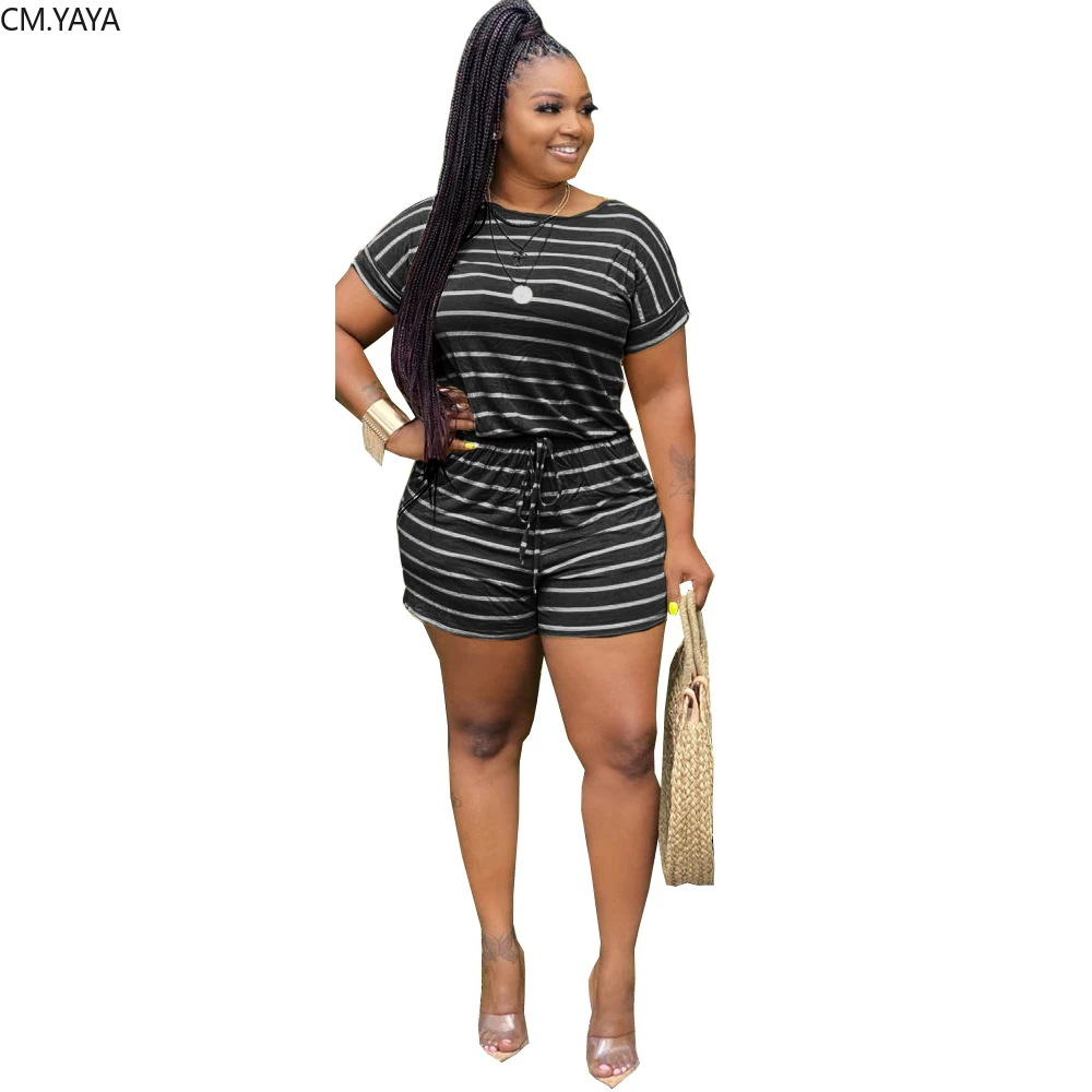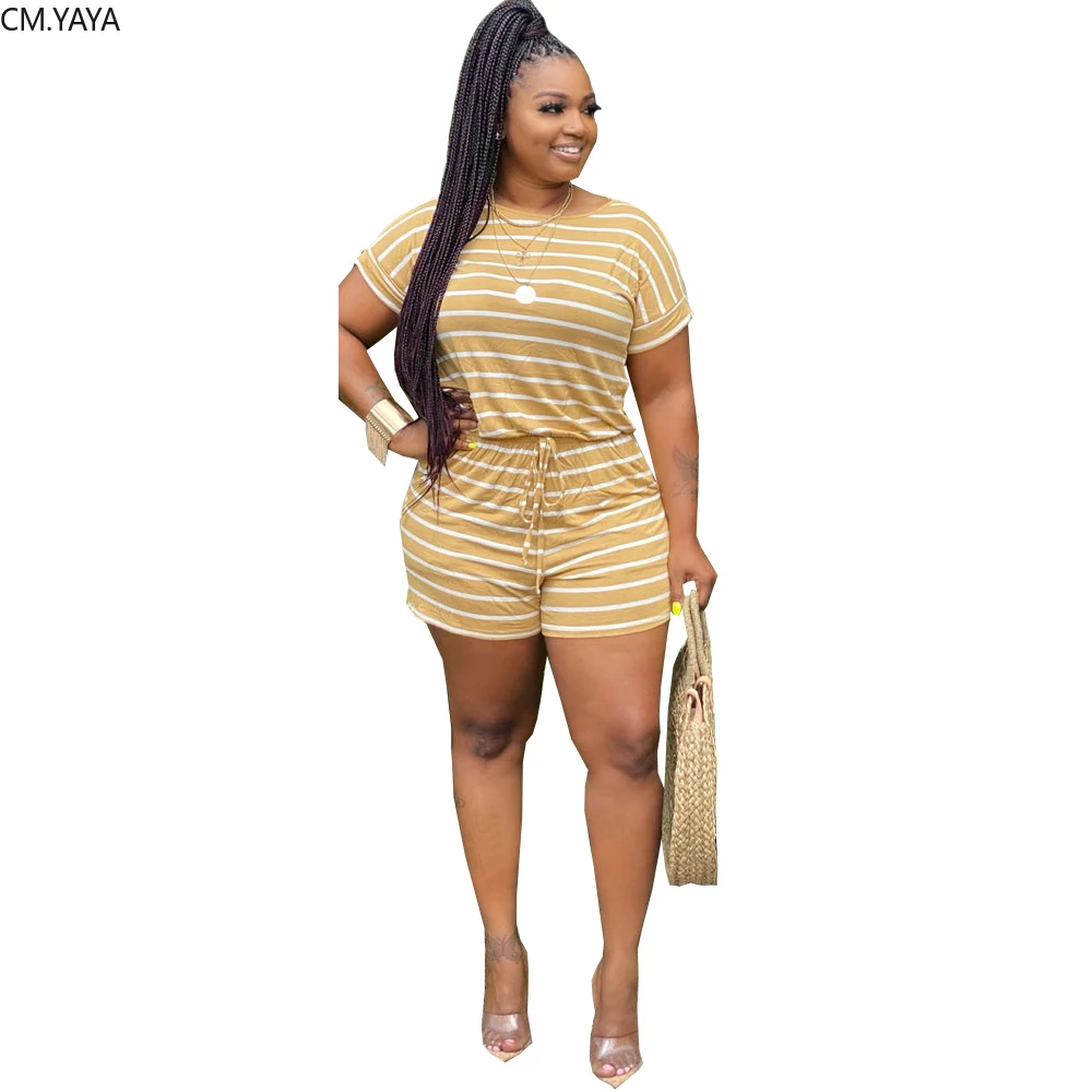 Женский слитный комбинезон в полоску, классический комбинезон с коротким рукавом, круглым вырезом и поясом на резинке, 2020