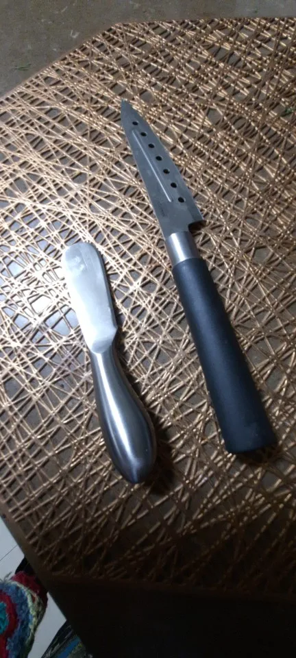 Название продукта: нож для маслаМатериал: лезвие из нержавеющей стали 420, хвостовик из нержавеющей стали 430Размеры: как показаноИспользование: можно использовать для протирания масла, масла и т. д.