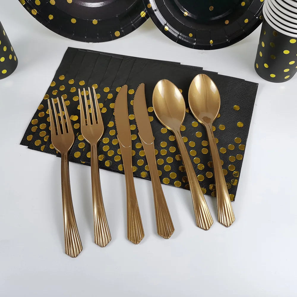 Набор одноразовой столовой посуды из черного золота