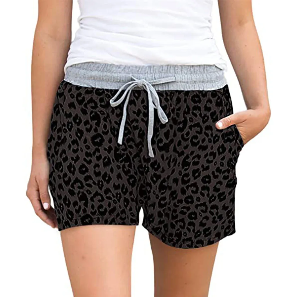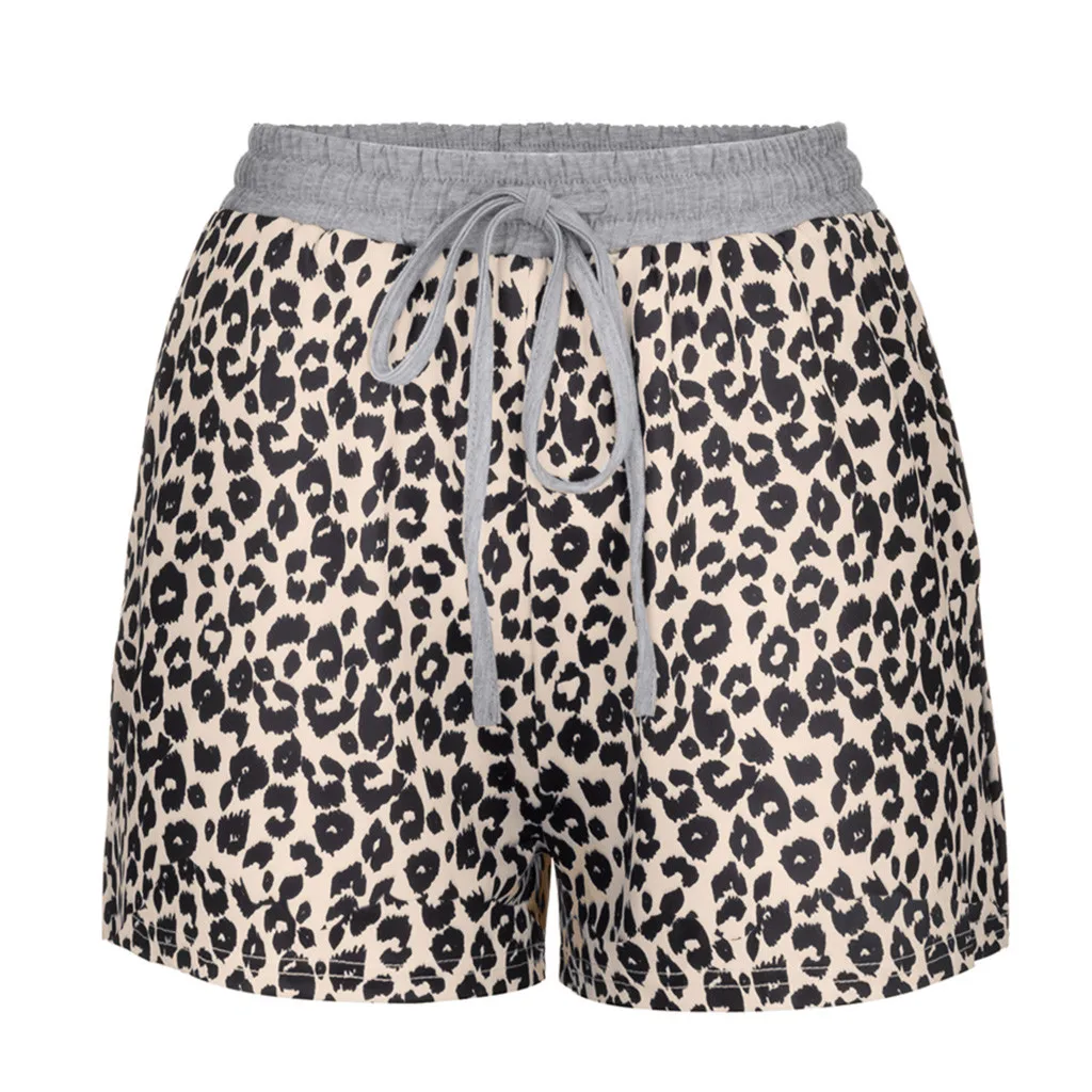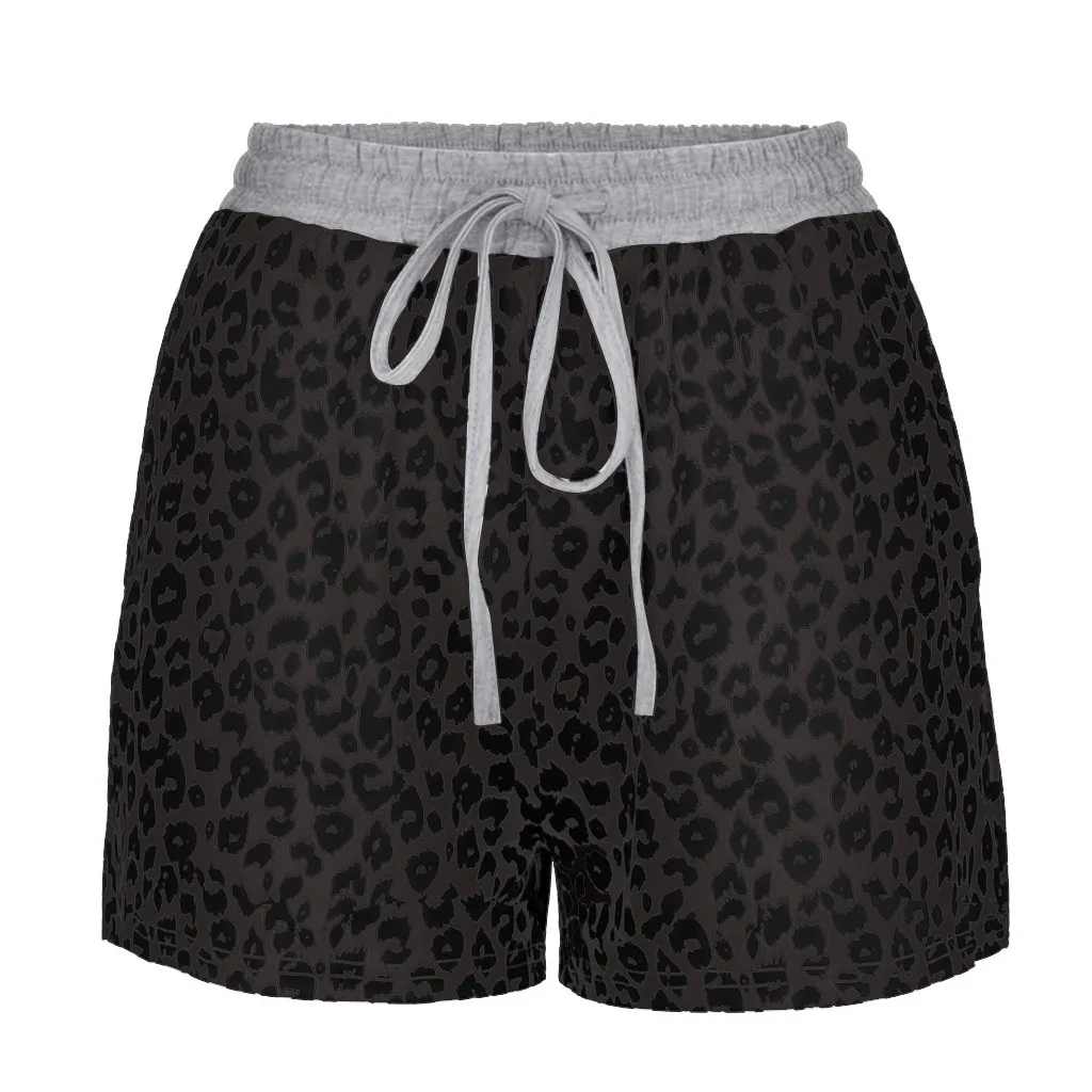 Шорты женские с эластичным поясом, удобные Свободные повседневные леопардовые Короткие штаны с завязками, с карманами, на лето