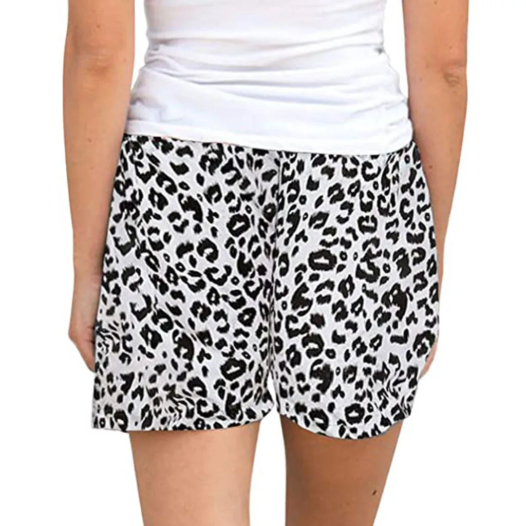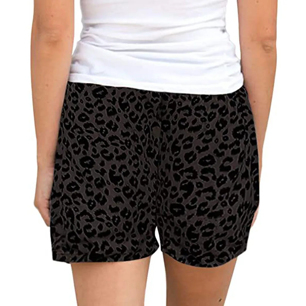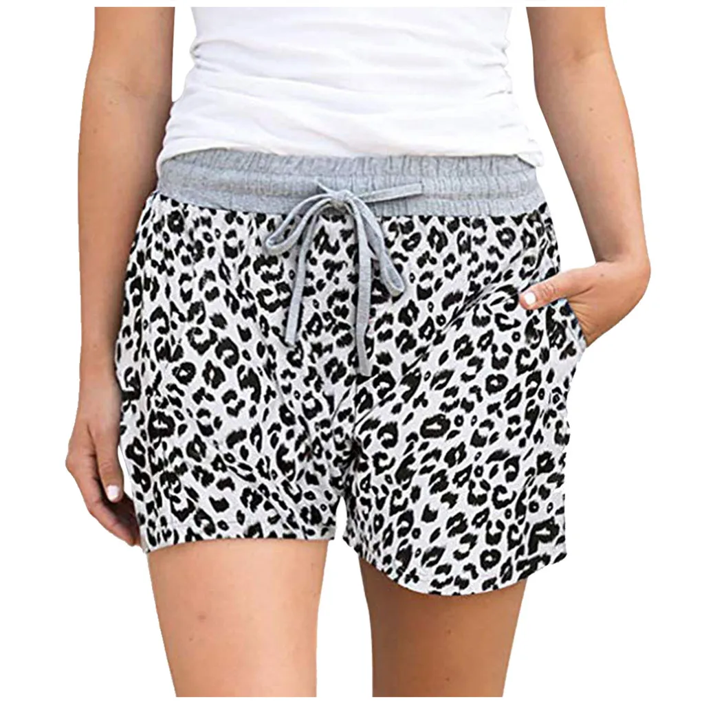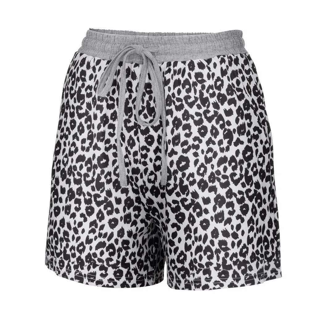 Шорты женские с эластичным поясом, удобные Свободные повседневные леопардовые Короткие штаны с завязками, с карманами, на лето