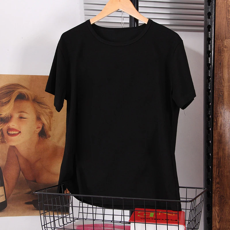 Базовые однотонные футболки для женщин 2021 Классная летняя одежда новые модные универсальные свободные черно-белые женские топы с круглым вырезом