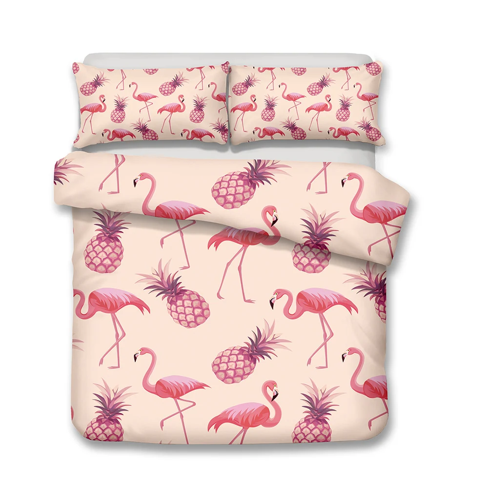 Комплект постельного белья с принтом фламинго, ананаса, розового цвета, для спальни, простыня и пододеяльник, наволочка, американский размер, европейский размер, домашний текстиль