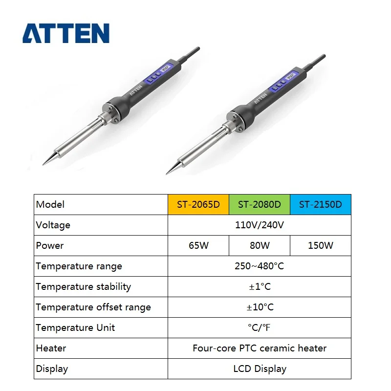 Электрический паяльник ATTEN 80 Вт150 Вт, станция ST-2150D с цифровым ЖК-дисплеем, паяльными жалами с регулируемой температурой