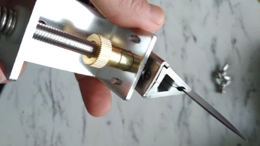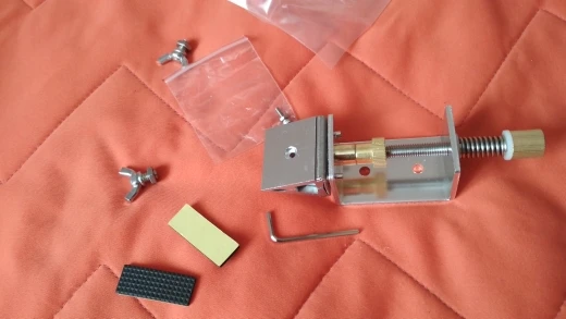 товар прибыл меньше чем за месяц. всё в целости и сохранности. упаковка двойная, как видно на фото, внутренняя без адреса, сама деталь полностью из алюминия, винт, упор и пружина железные, втулки и гайки бронзовые. нож держит хорошо и поворачивается тоже хорошо. брал для пробы заточки на кухне без станка. думаю приклеить к поверхности стола на двустороннюю самоклейку. поработаем отпишусь дополнительно. спасибо за товар. и доставку. продавца рекомендую однозначно. всем успехов в делах...