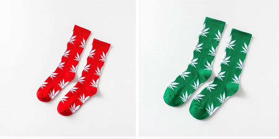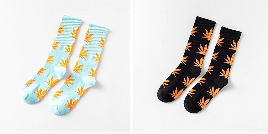 Носки женские хлопковые с забавным рисунком сорняков, повседневные удобные носки с разноцветными кленовыми листьями, черные, белые, красные, в стиле Харадзюку, 10 цветов