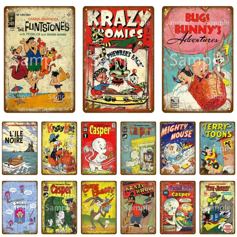 Кролик Мышь собака утка комикс Металл постер Ретро Винтаж Оловянная...
