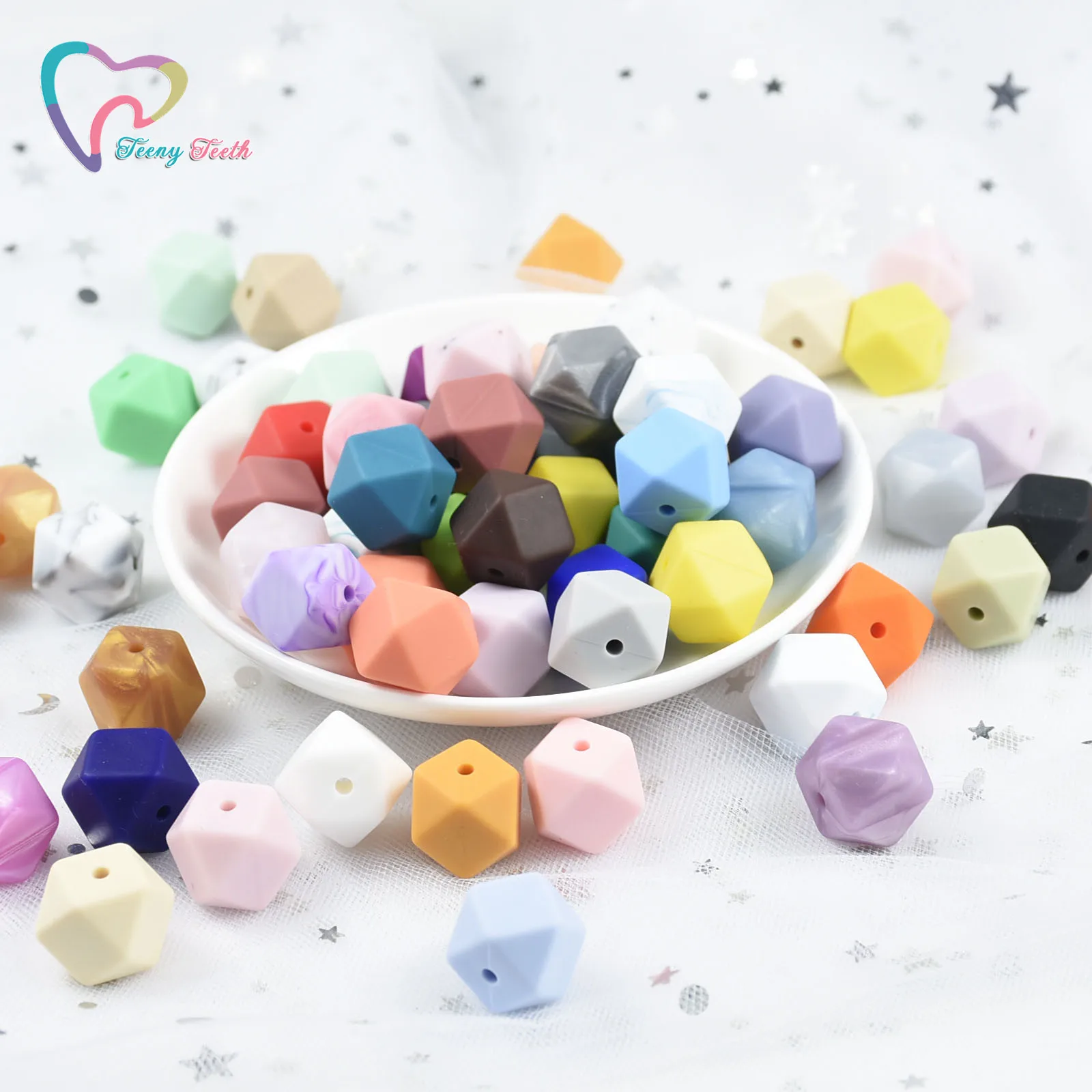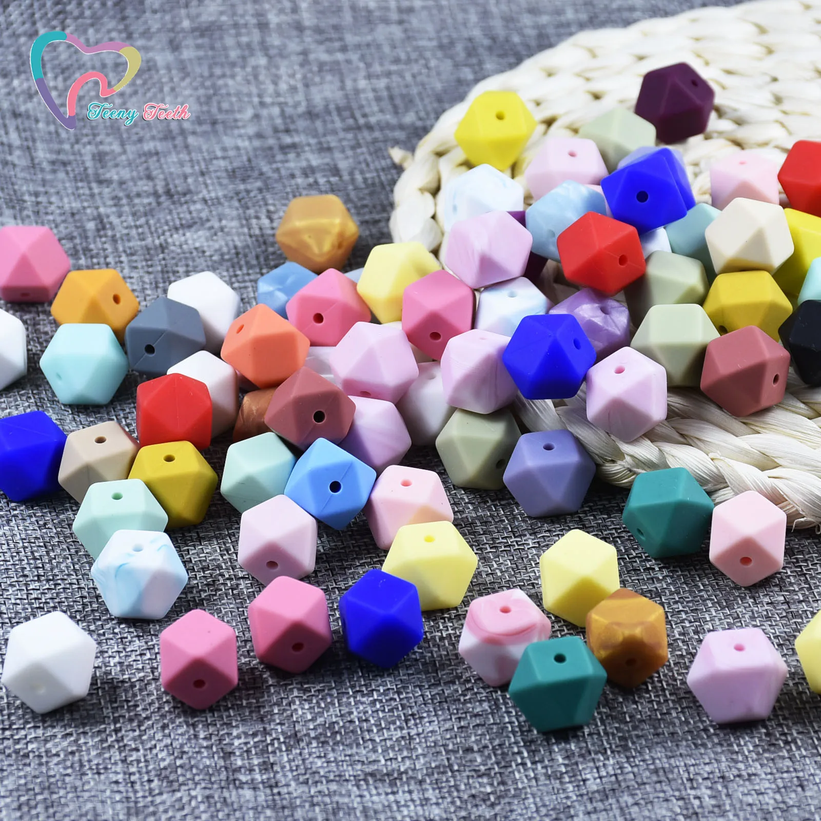 100 шт мини шестигранный пищевой силиконовый шарик 14 мм детский Прорезыватель для зубов детская игрушка для прорезывания зубов BPA бесплатно ожерелье для кормления Соска-подвеска