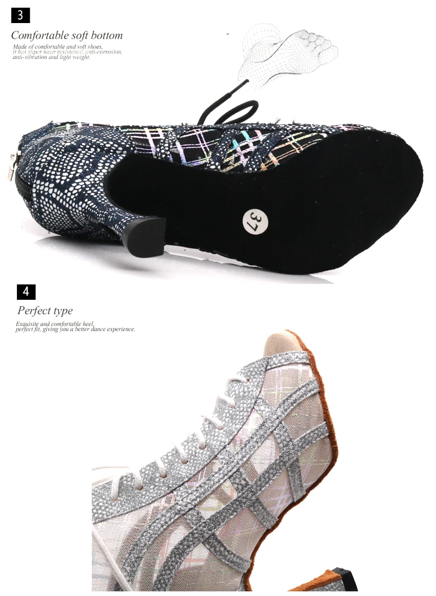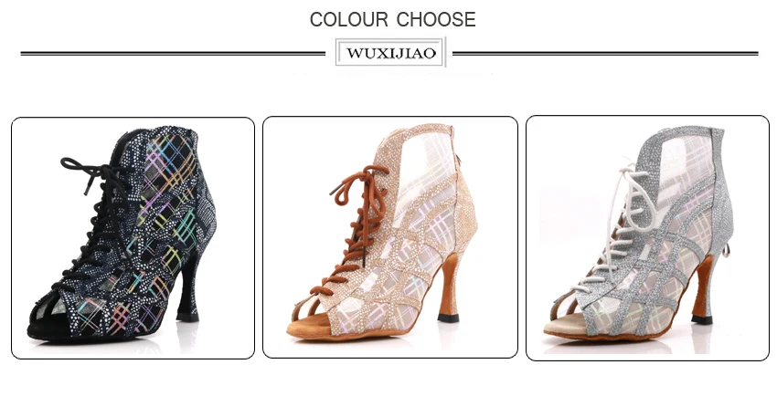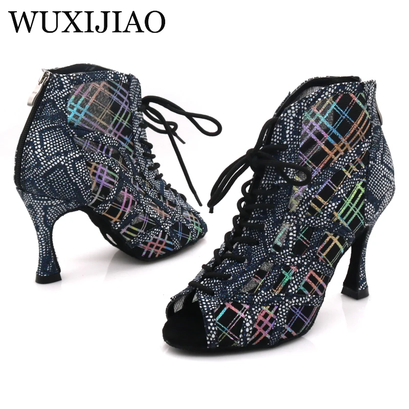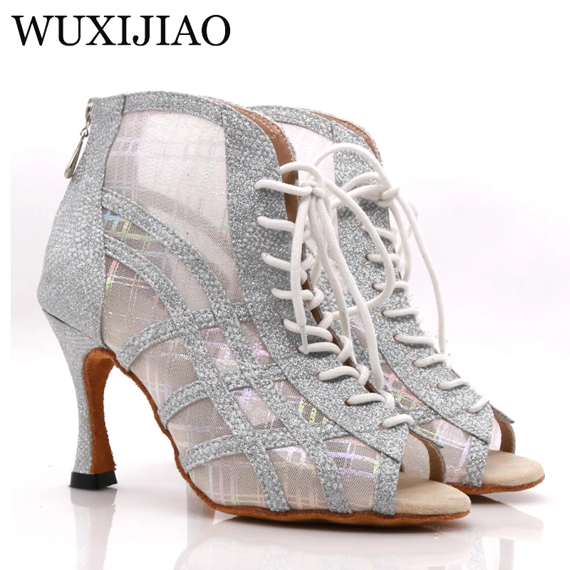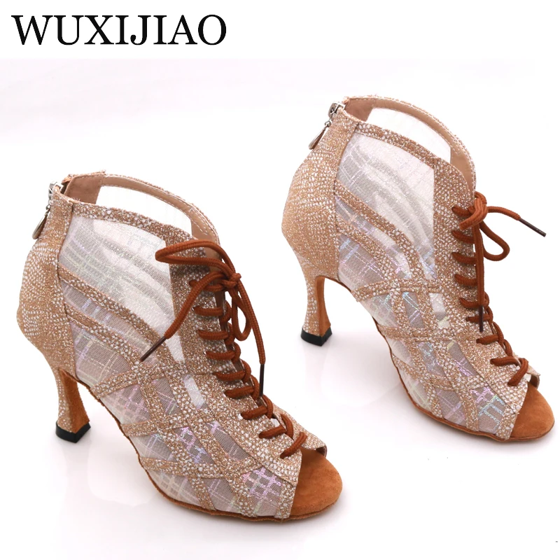 Бренд WUXIJIAO, высокие ботинки для латиноамериканских танцев, обувь с мягкой подошвой, Обувь для бальных танцев сальсы, Женская сетчатая обувь для кубинских танцев на высоком каблуке