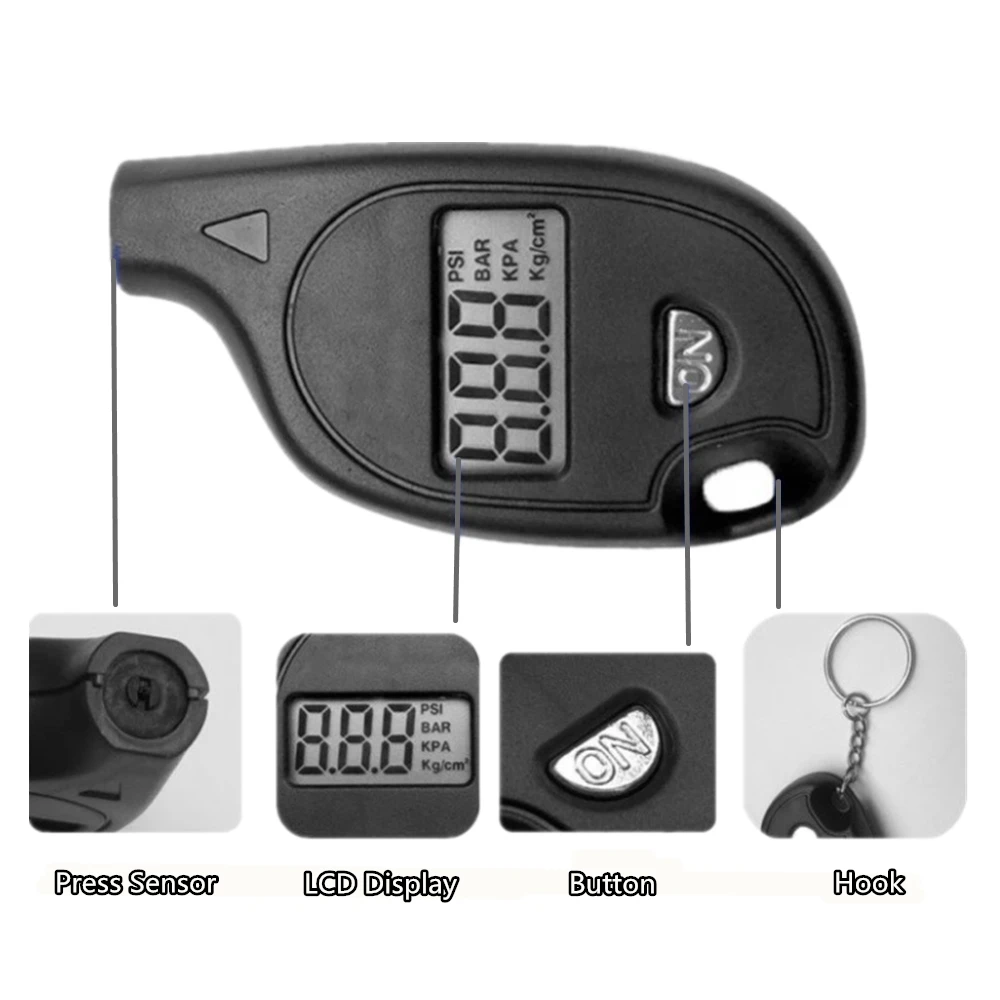 Мини брелок стиль шин цифровой ЖК-дисплей 2-150 PSI автомобильный измеритель давления воздуха для автомобильных мотоциклов