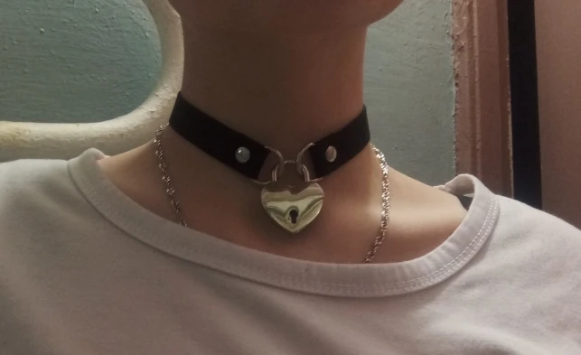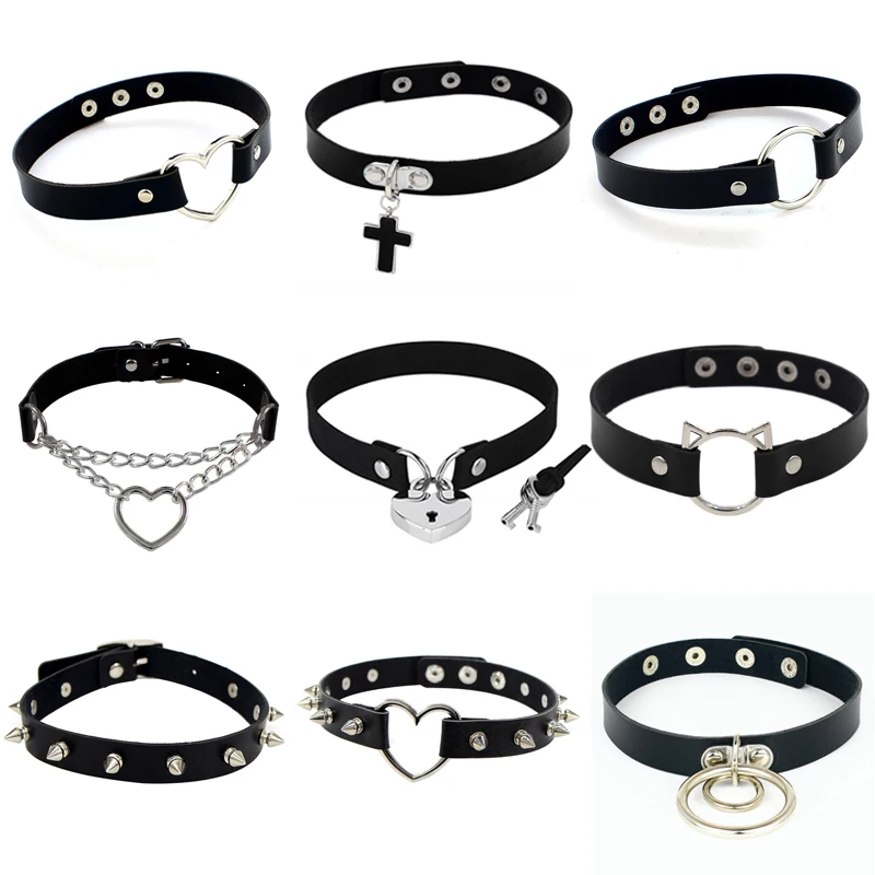 Ожерелье-чокер кожаное, с замком в виде сердца, с шипами, ошейник с заклепками