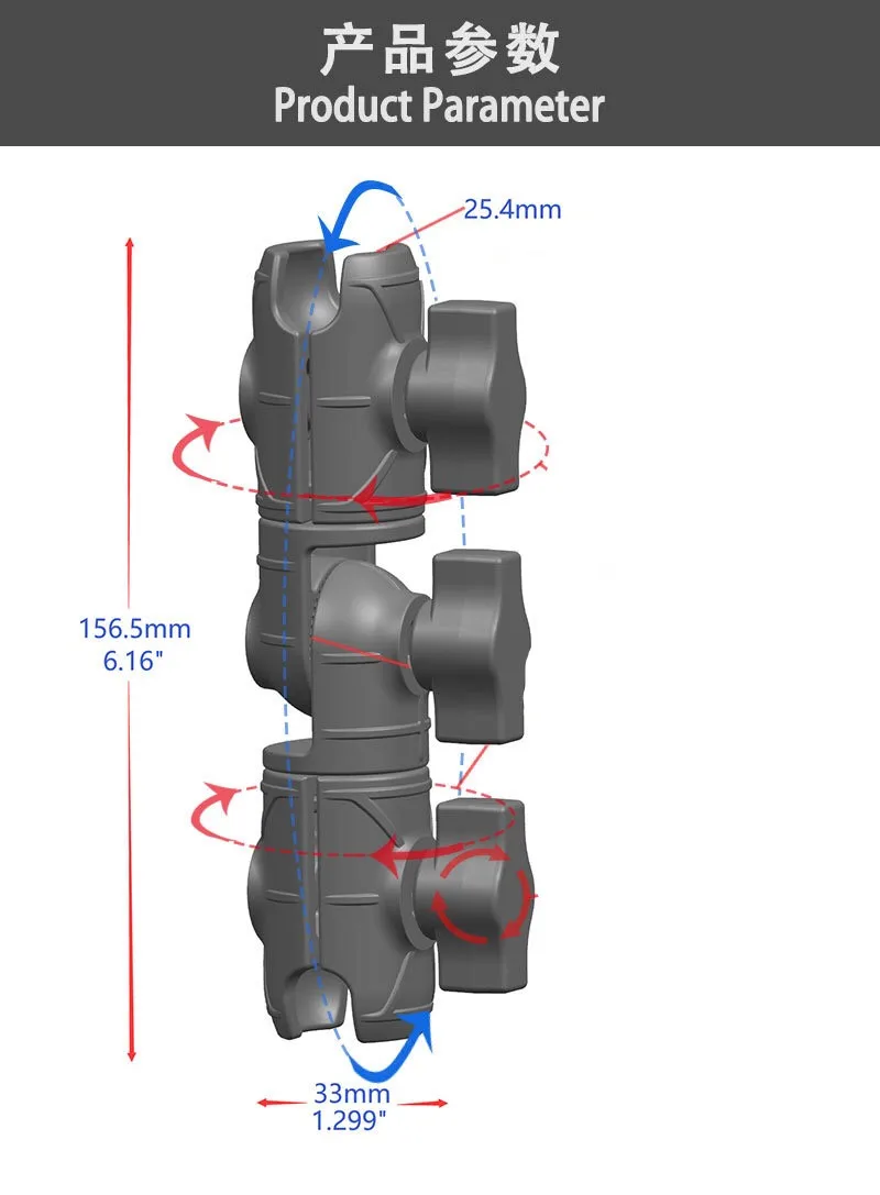 Двойной поворотный кронштейн, черный для крепления для 1 "шаровой базы