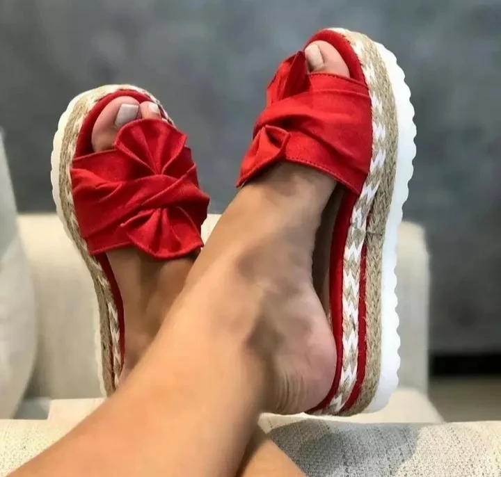 Шлепанцы женские, летние, с бантом, на толстой подошве