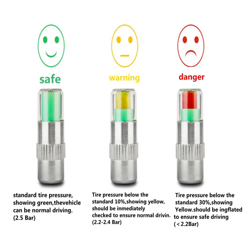 4 шт./лот 2,0/2,2/2,4 Бар 30/32/36 фунт/кв. Дюйм монитор давления в шинах манометр Крышка датчика Индикатор оповещения мониторинг инструменты комплект