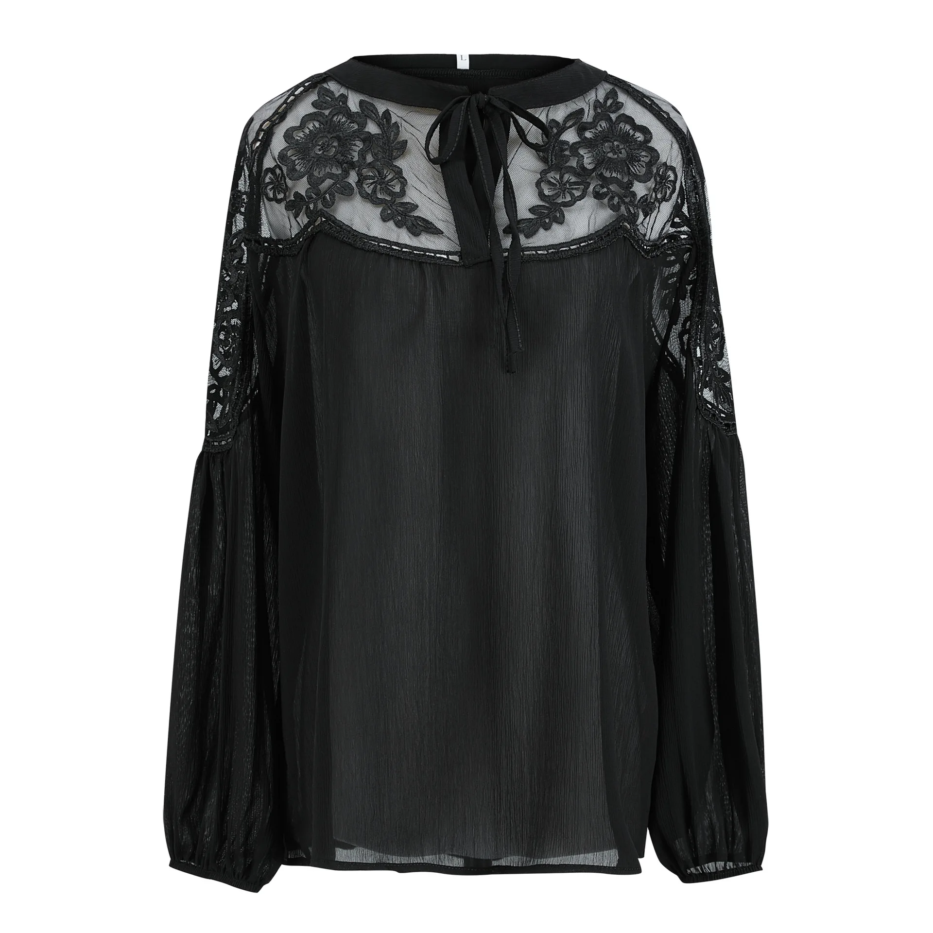 Женская кружевная блузка с длинным рукавом TEELYNN, винтажная шифон...