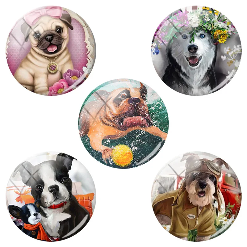 TAFREE mix милая собака 121516182025303540 мм круглый стеклянный кабошон демонстрационные бусины с плоской задней стороной фурнитура сделай сам Ги, брелок DG100