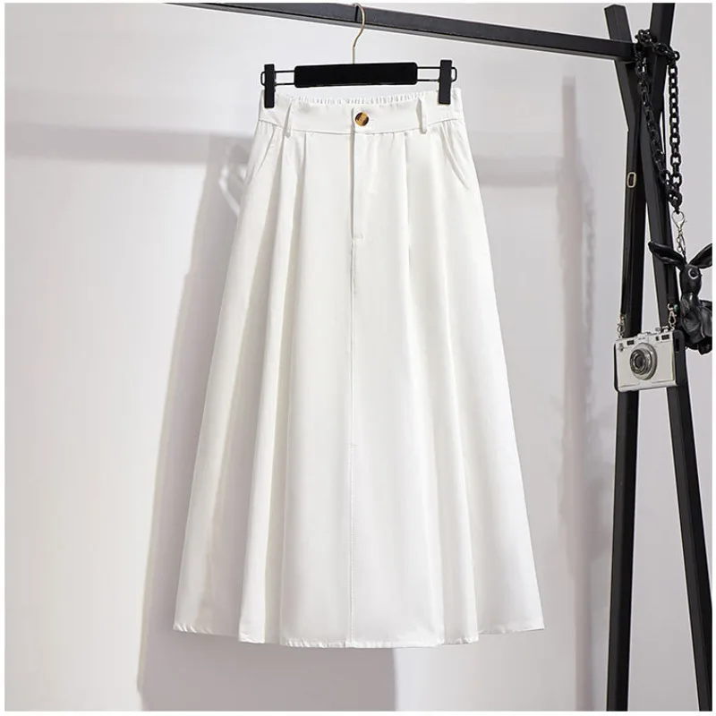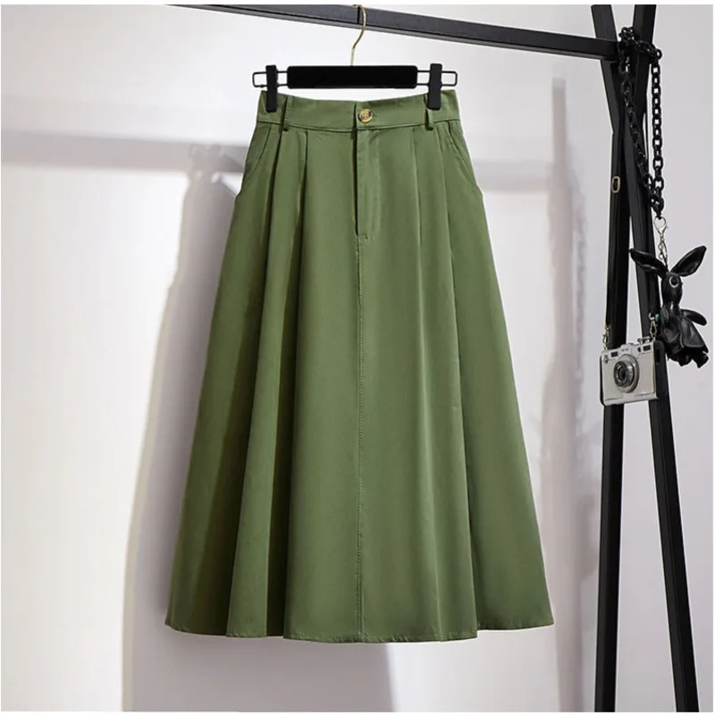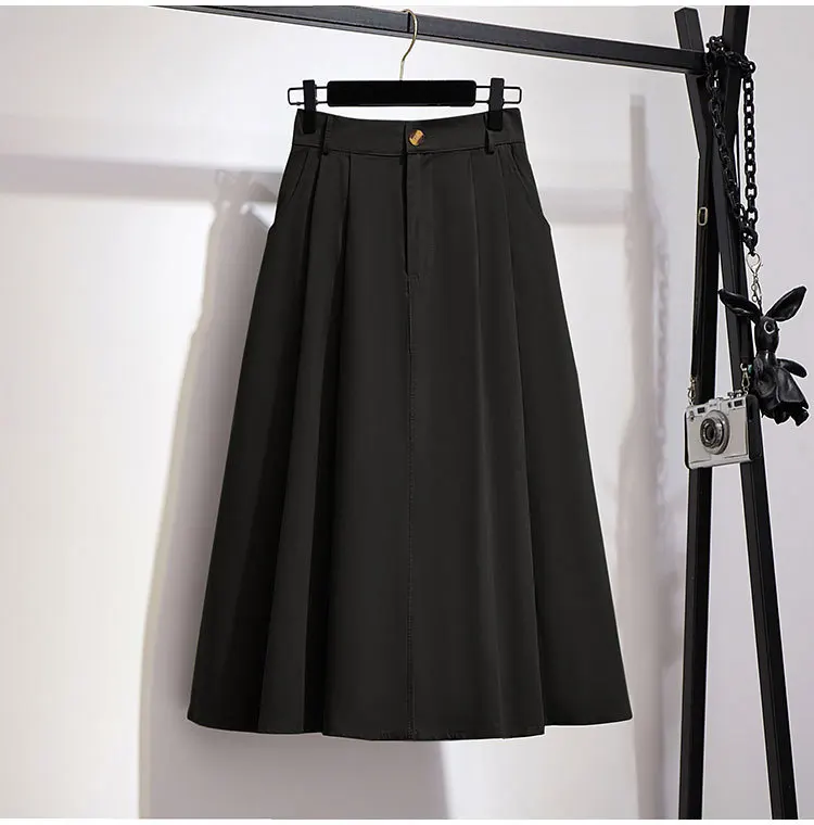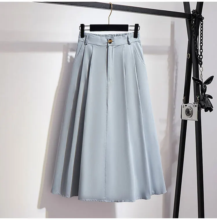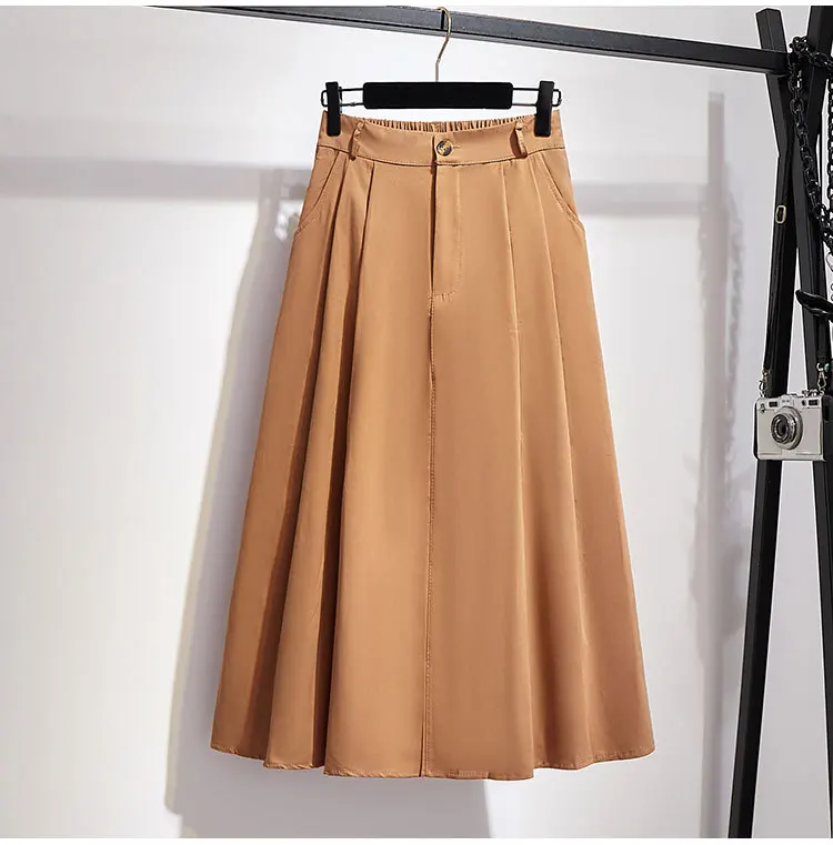 Женская юбка до середины икры PEONFLY, элегантная длинная юбка на пуговицах с высокой талией, школьная юбка в Корейском стиле, лето 2020