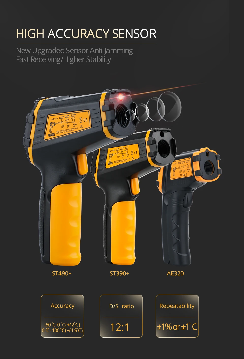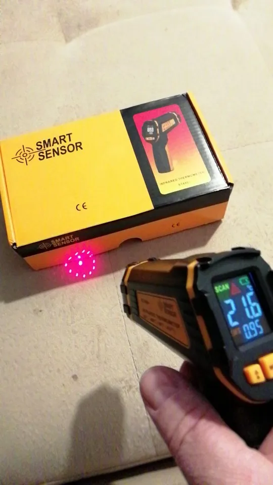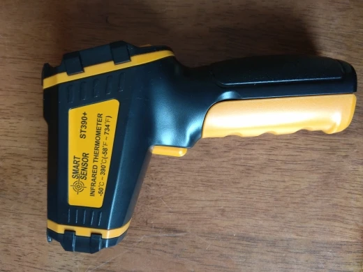 Я покупаю ST 390. Для измерения температуры двигателей в радиоуправлении. По сравнению с двумя другими лазерными термометрами, это плохо отмечает температуру. Иногда с разницей 15 и 20 градусов. Если он был небольшим, его нельзя отрегулировать или откалибровать, диапазон ошибки температуры. Так что вам это нравится или нет, вы остаетесь с температурой, которая отмечает вас, если или если. Если бы вы увидели, что объяснили это в объявлении, перед продажей.