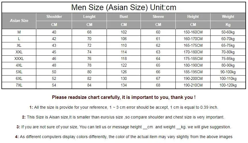 2:ЭтоРазмер соответствует стандарту Aisan, он меньше, чем Европейский/американский размер, поэтому очень важно сравнить размер плеч и груди.