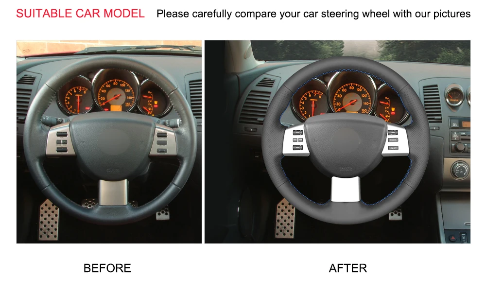 ★1. Из-за различных названий моделей автомобилей в каждой стране, подходящее название модели автомобиля и год запуска только для справки.Поэтому, пожалуйста, обратите внимание на изображение рулевого колеса, убедитесь, что они одинаковые. Если вы не уверены, пожалуйста, свяжитесь с нами.★2. Не снимайте оригинальную кожу перед установкой.