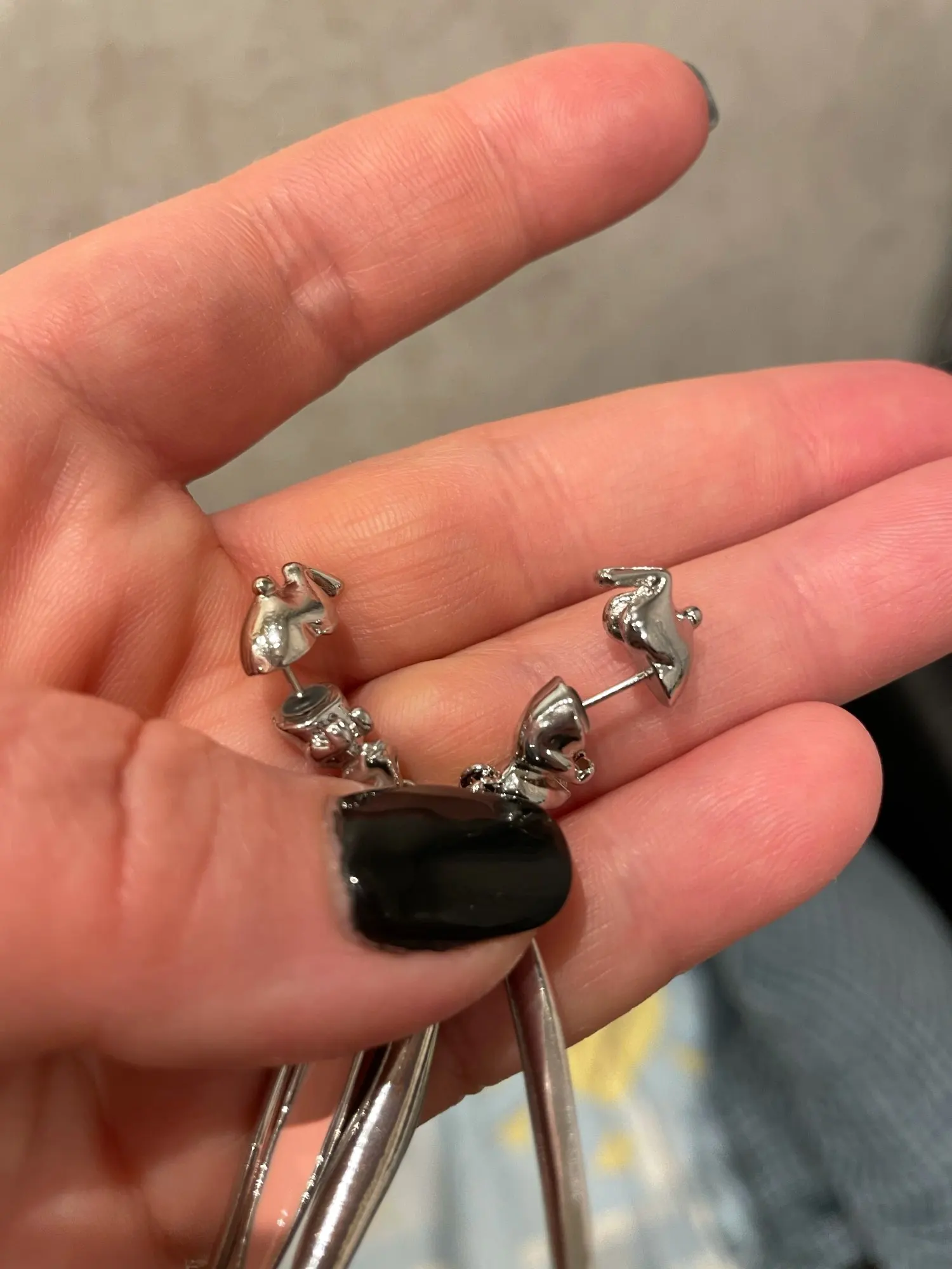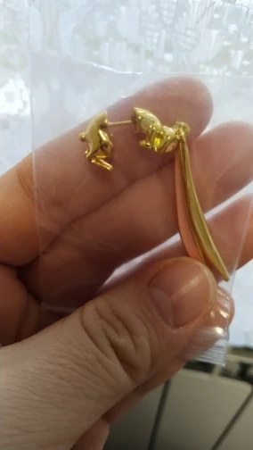 я получила мои серёжки!!! я их так ждала!!! И осталась довольна. Это тот случай когда ожидания и реальность совпадают)) быстрая доставка- заказала 19.01 и 9. 02 они уже были у меня. Обратите внимание, что они идут по одной!! Я сразу брала два зайки, т.к. намерена носить парой. Серьги весомые, но они и не на каждый день- так ,когда настроение похулиганить )) Позже выложу фото, а пока слежу как мои ушки на них реагируют. Чтобы их одеть нужно потренироваться,но это дело привычки. Сам гвоздик немного мягкий( легко погнуть, но я было к этому готова; об этом писали в отзывах)
