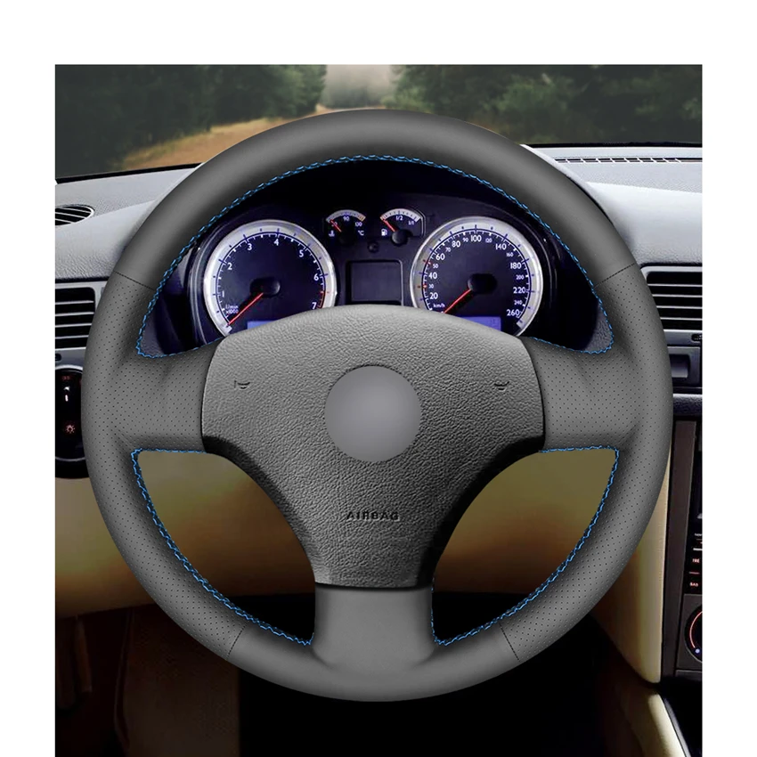 Сшитая вручную черная искусственная кожа черного цвета чехол рулевого колеса автомобиля для Volkswagen Bora 2001 2002 2003 2004 2005