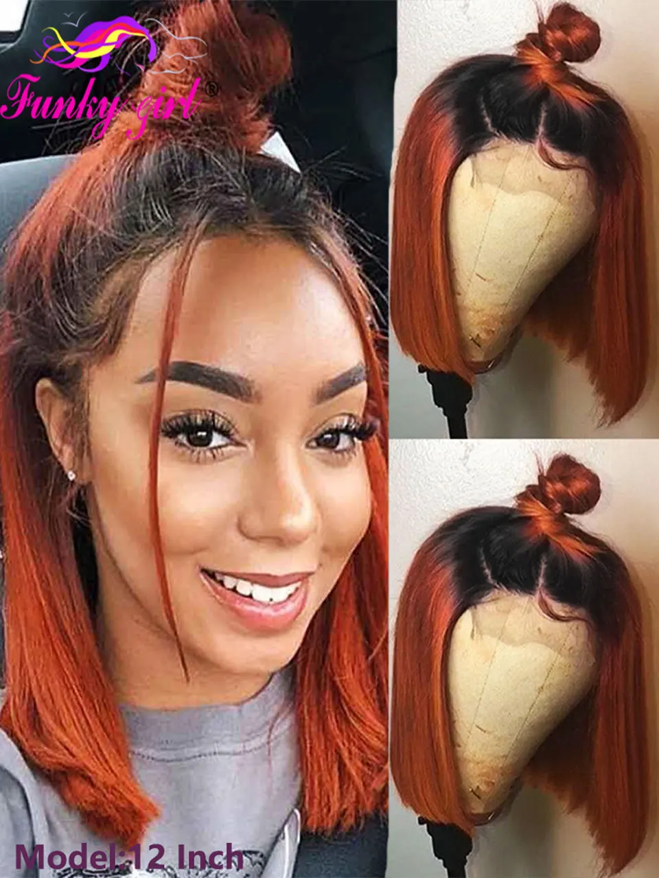 13x4 малайзийские кружевные передние прямые человеческие волосы парики без клея 8-24 дюйма короткие волосы Омбре Боб на кружевной передней части для черных женщин Remy