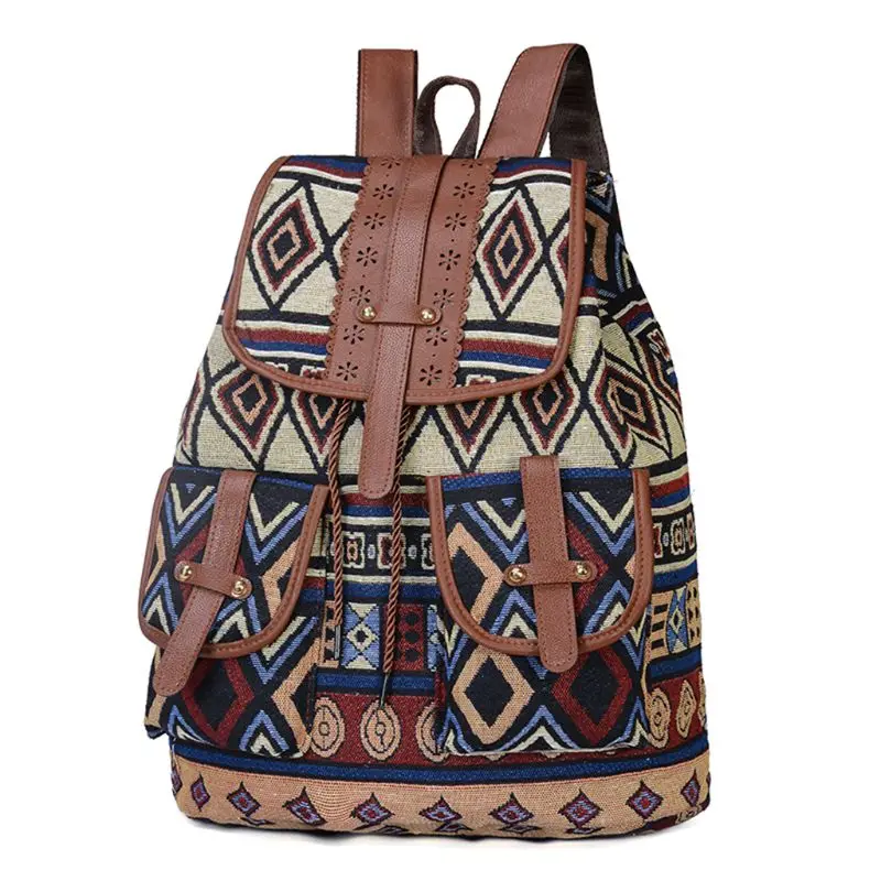 Женский холщовый рюкзак с винтажным принтом, этнический рюкзак для ...