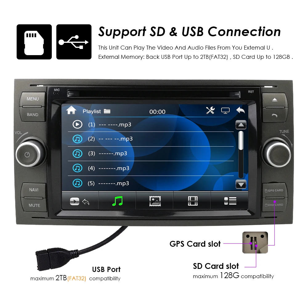 7-дюймовый 2 Din автомобильный DVD GPS DAB плеер для Ford FocusMondeoTransitC-MAXFiest GPS RDS, с управлением колесом, карта HD1080P 8G