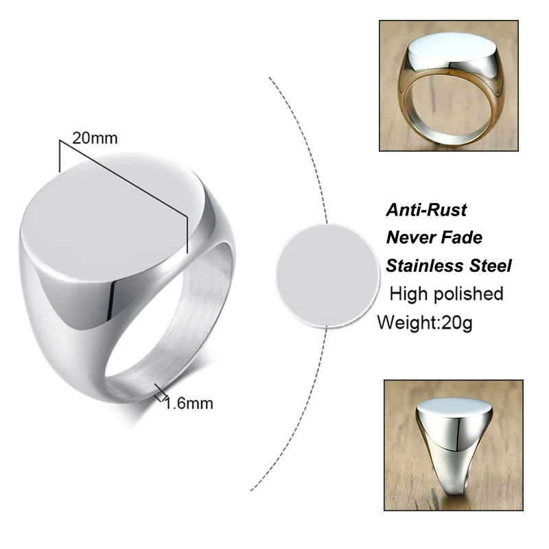 Мужское кольцо-вывеска из нержавеющей стали, 18 мм