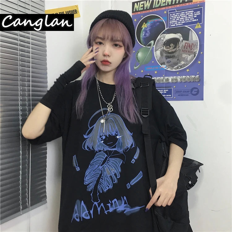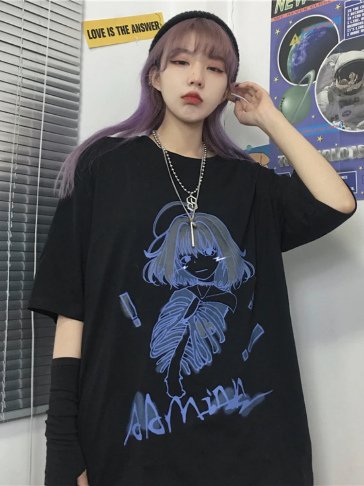 Футболка женская готическая в Корейском стиле, уличная одежда с графическим принтом в стиле Харадзюку улззанг, одежда в готическом стиле, лето