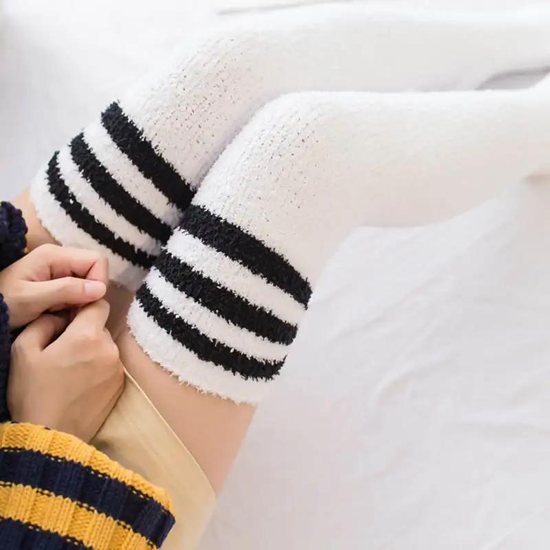 Гольфы женские, из мягкого флиса, зимние, теплые, в полоску