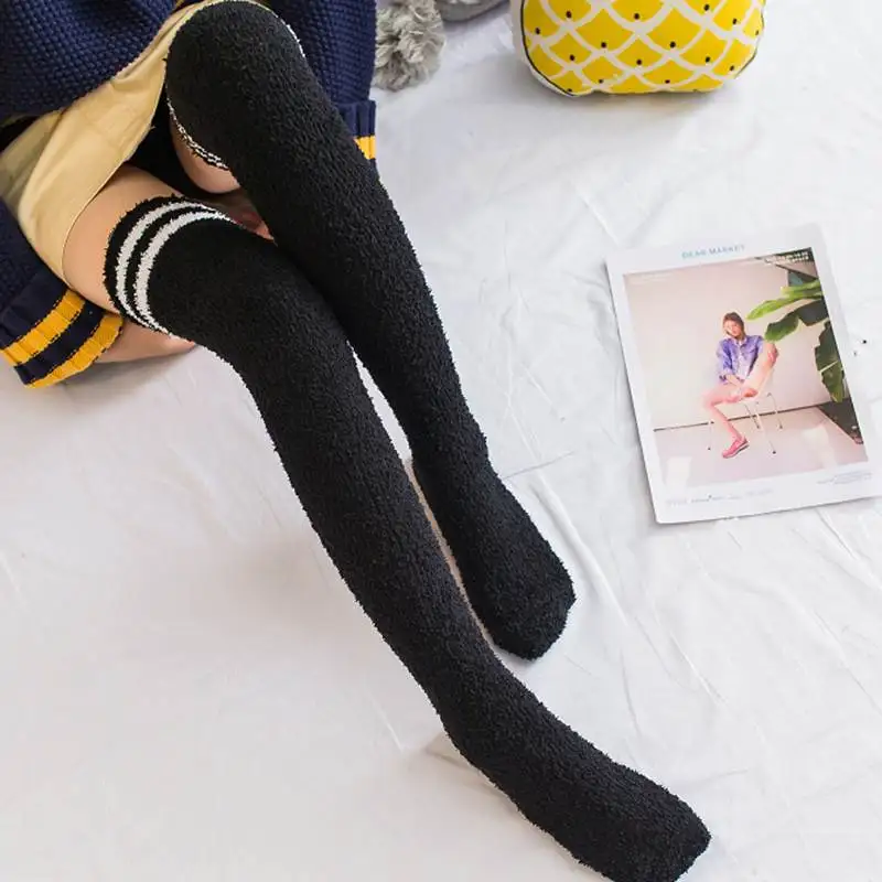 Зимние теплые носки-тапочки выше колена женские милые гольфы до бед...